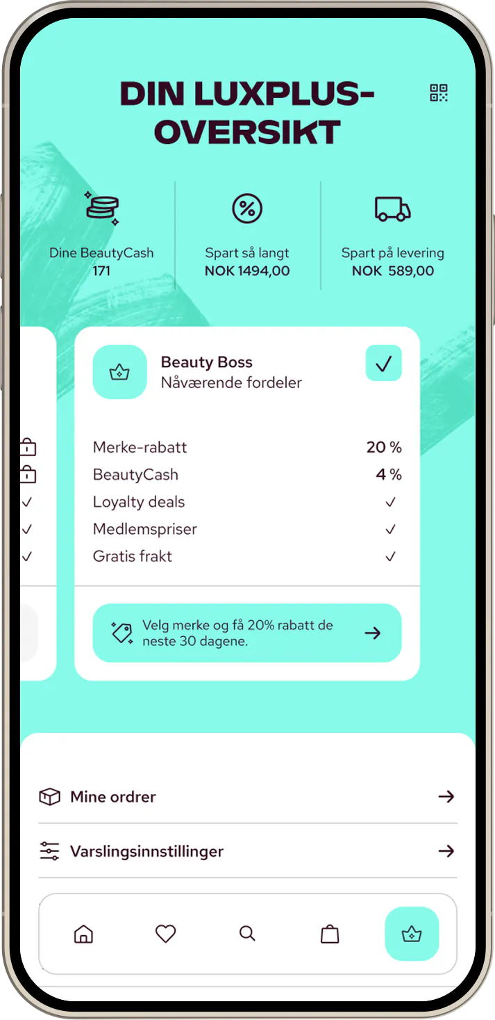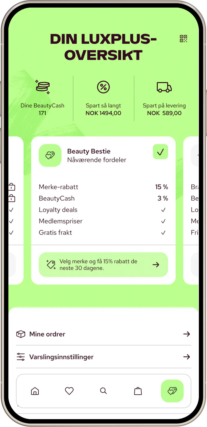 Appen har alt du kjenner fra Luxplus – pluss tilbud og funksjoner du kun får i appen.