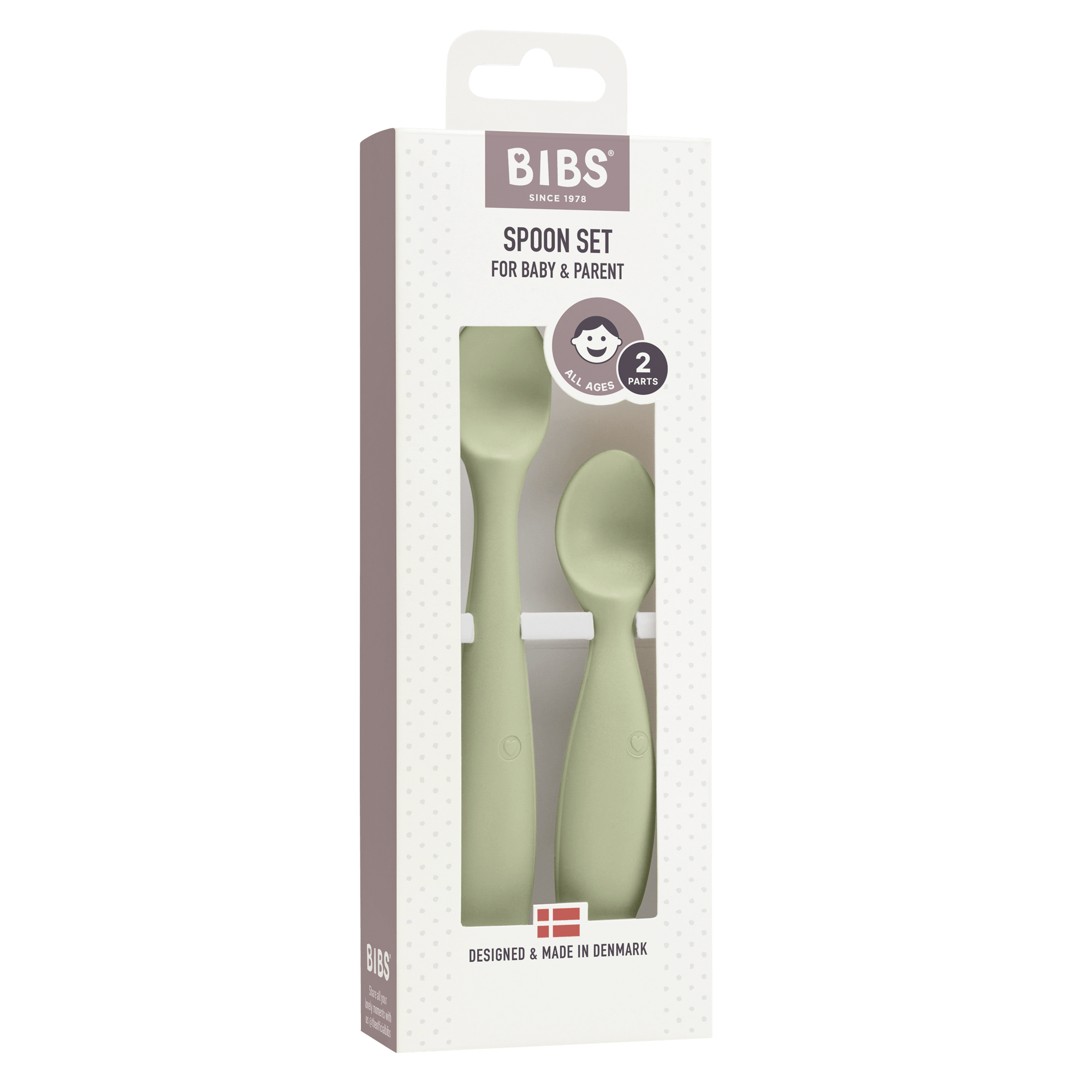 Spoon Set Sage fra BIBS er et fantastisk tilbehør til babyer, som består av to skjeer - en liten til barnet og en større til forelderen.