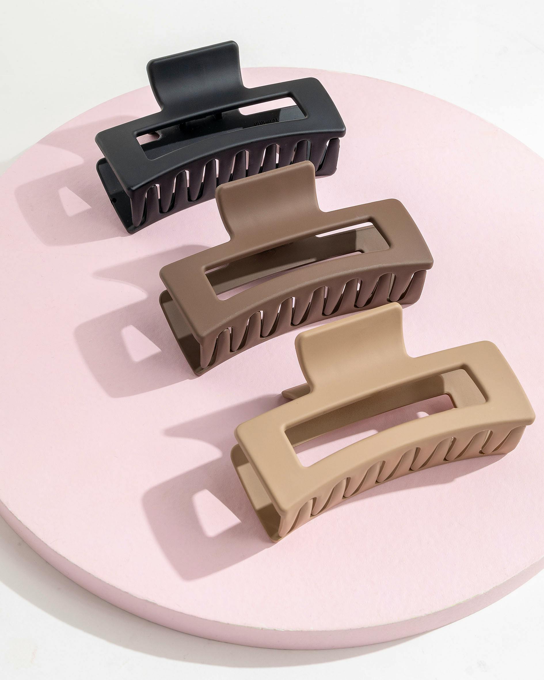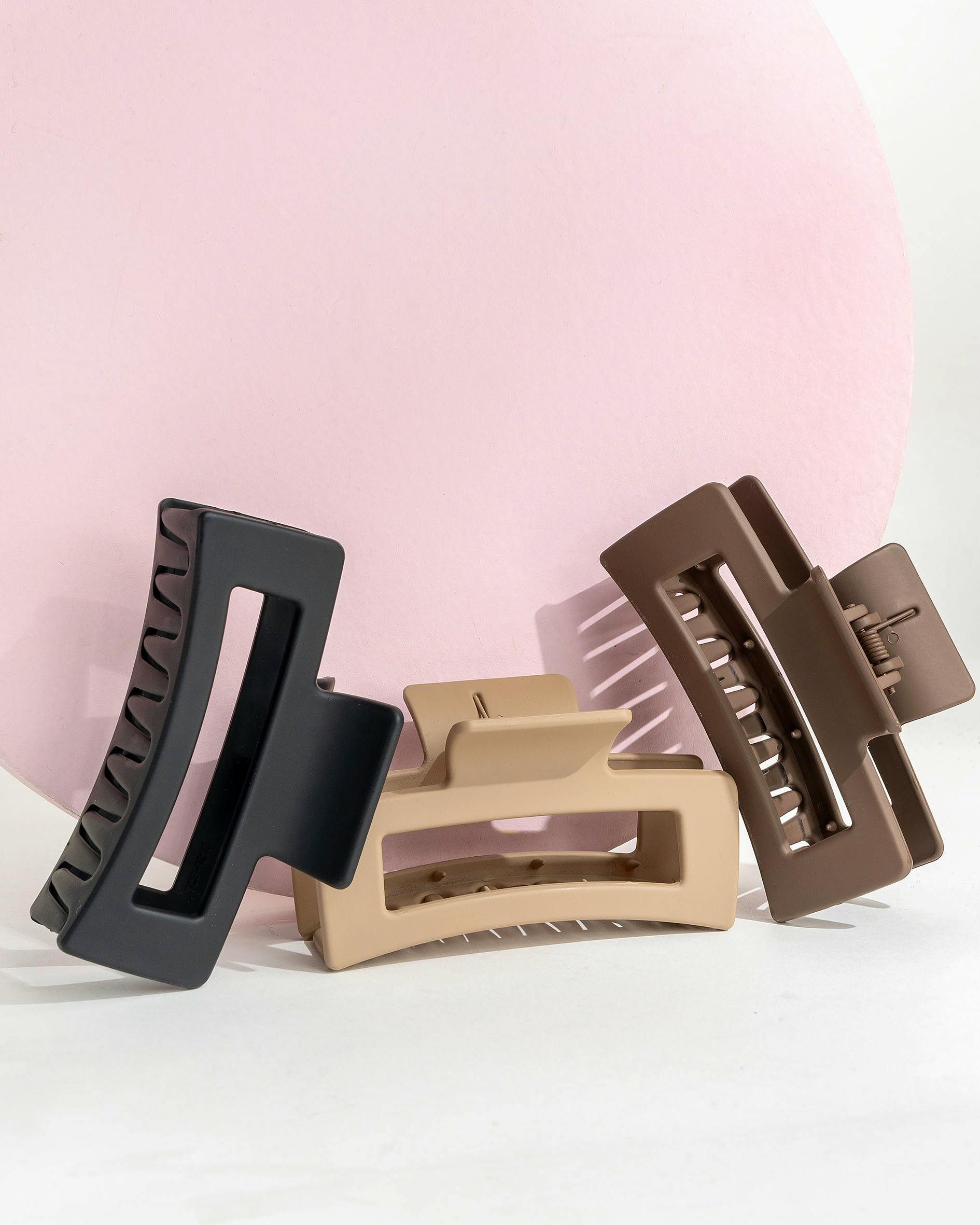 Classic Claw Clips fra brushworks er uunnværlige verktøy for hårstyling, designet for å gi et sikkert og komfortabelt grep for ulike hårtyper. Disse klipsene er laget med tanke på holdbarhet, slik at de tåler daglig bruk uten å miste grepet. Deres tidløse design gjør dem til et allsidig tillegg til enhver hårpleierutine, passende for både hverdagslige og formelle frisyrer.