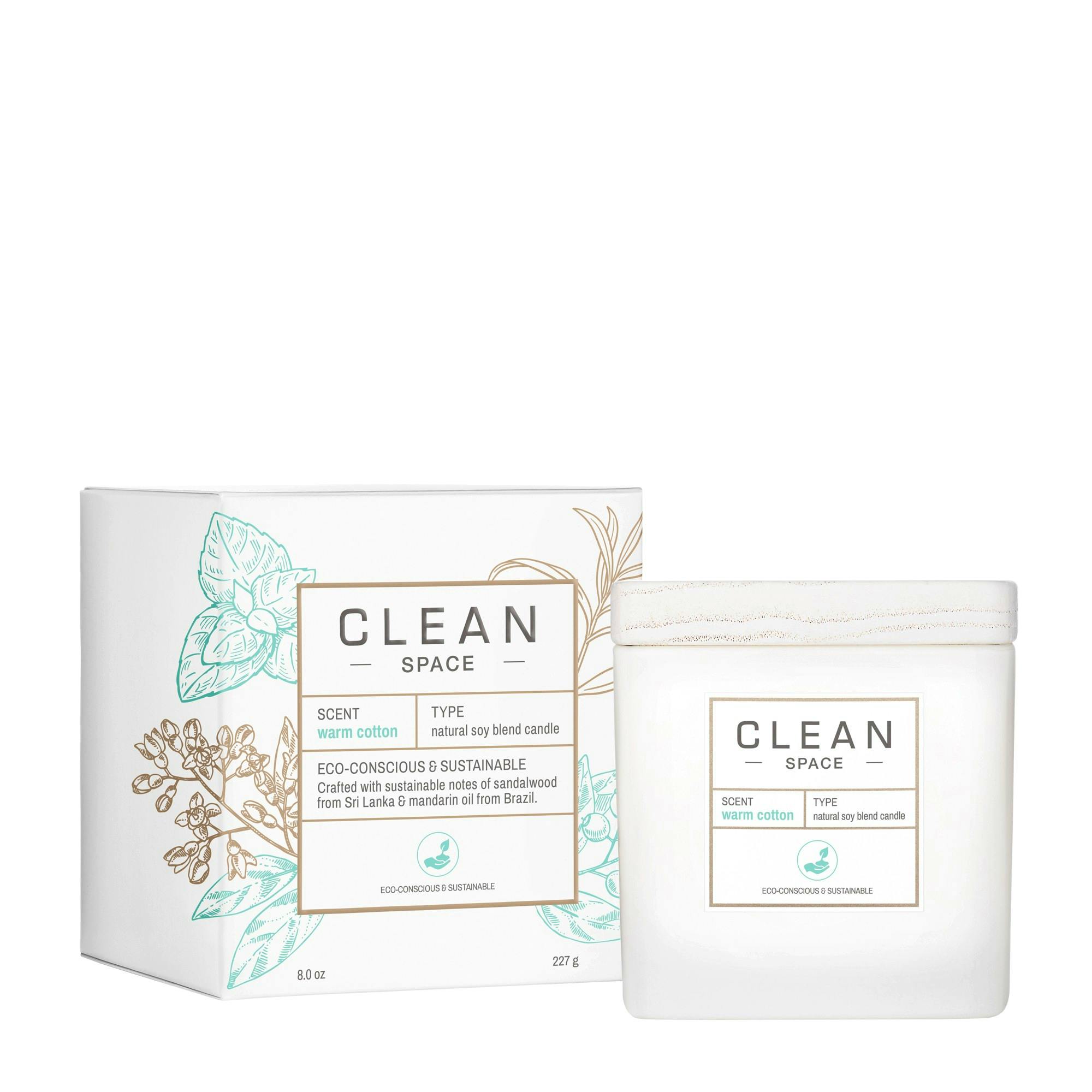 Clean Warm Cotton Candle er et duftlys med en beroligende, mild duft som minner om rent, luftig og nylagt sengetøy. Duften skaper ro og avslapning rundt seg. Duften er 100% vegansk og tilfører hjemmet en hyggelig, rolig atmosfære som innbyr til kos og velvære. Stearinlyset er beriket med naturlig soyavoks og to bomullspinner, som gir en rolig, jevn og ren brenning. Stearinlyset er laget av bærekraftige ingredienser og kommer i et dekorativt og resirkulerbart glass som passer til ethvert rom i hjemmet, for eksempel soverom, stue eller bad. Stearinlyset har opptil hele 40 timers forbrenningstid.