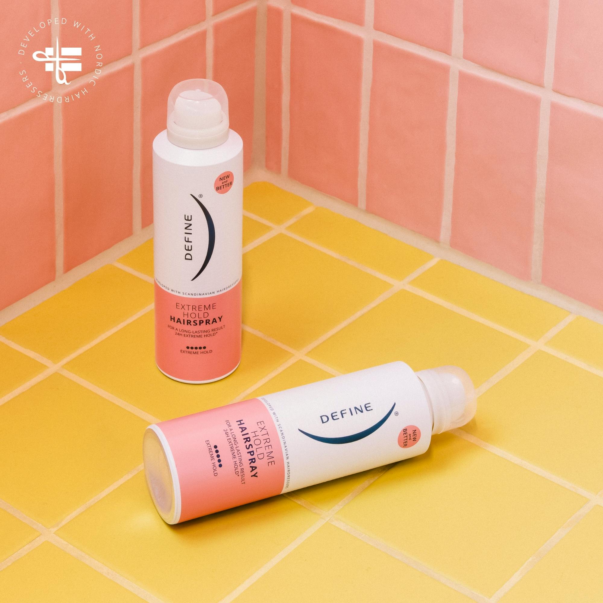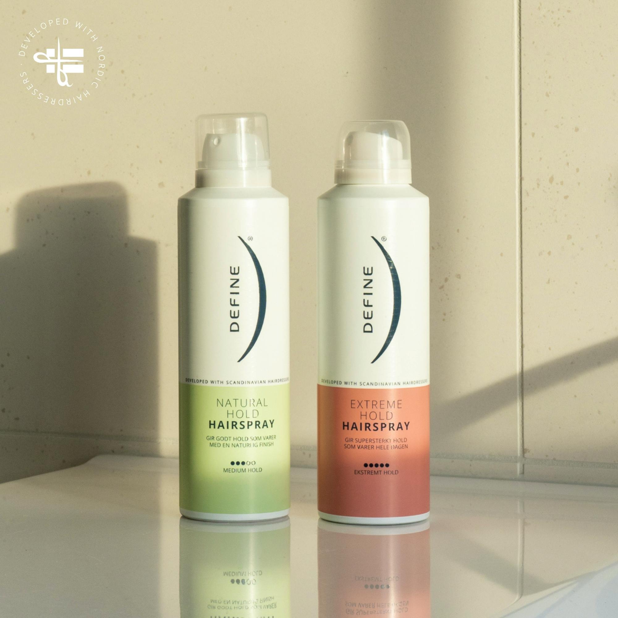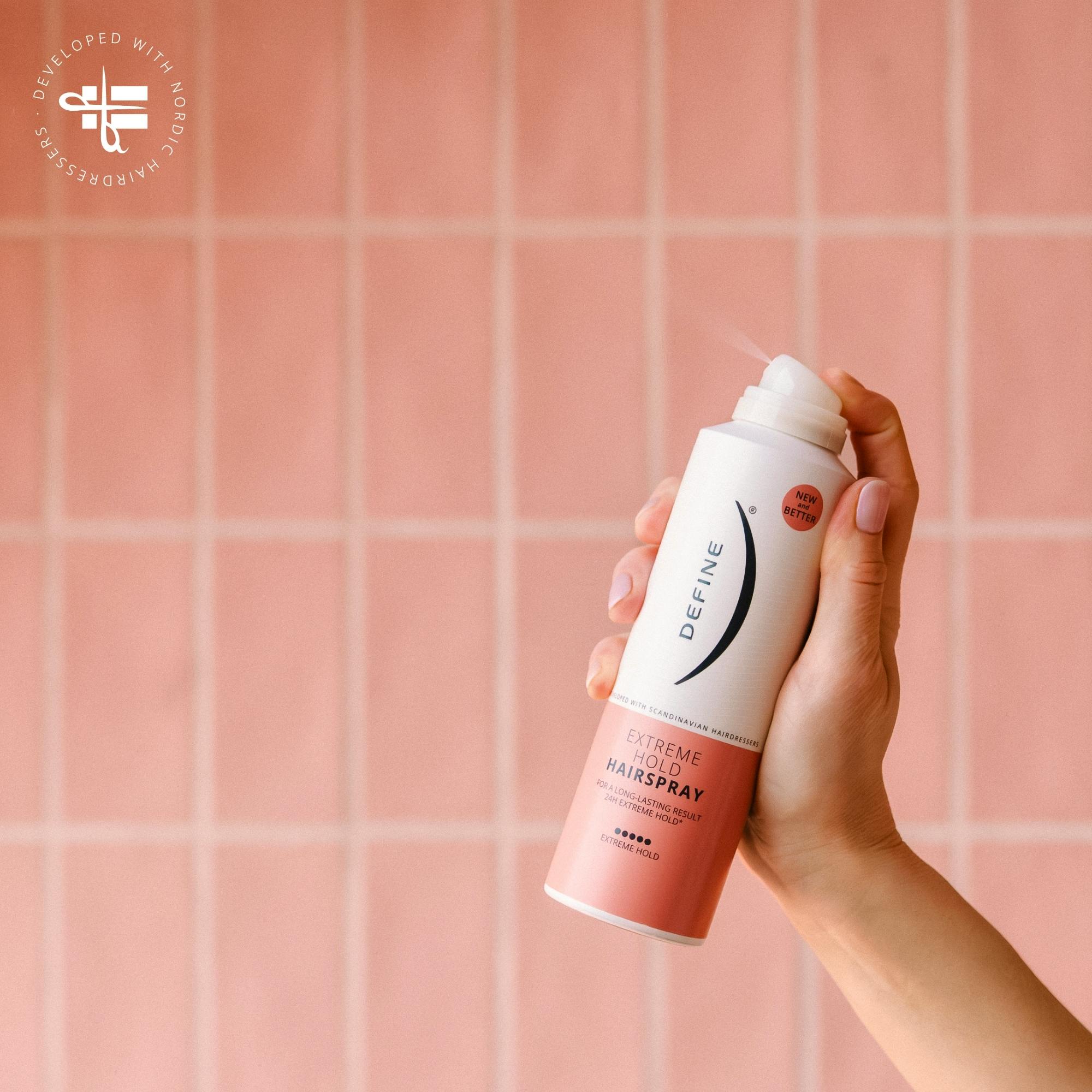 Define Extreme Hold Hairspray er en tørr hårspray som gir ekstremt godt hold til alle frisyrer.