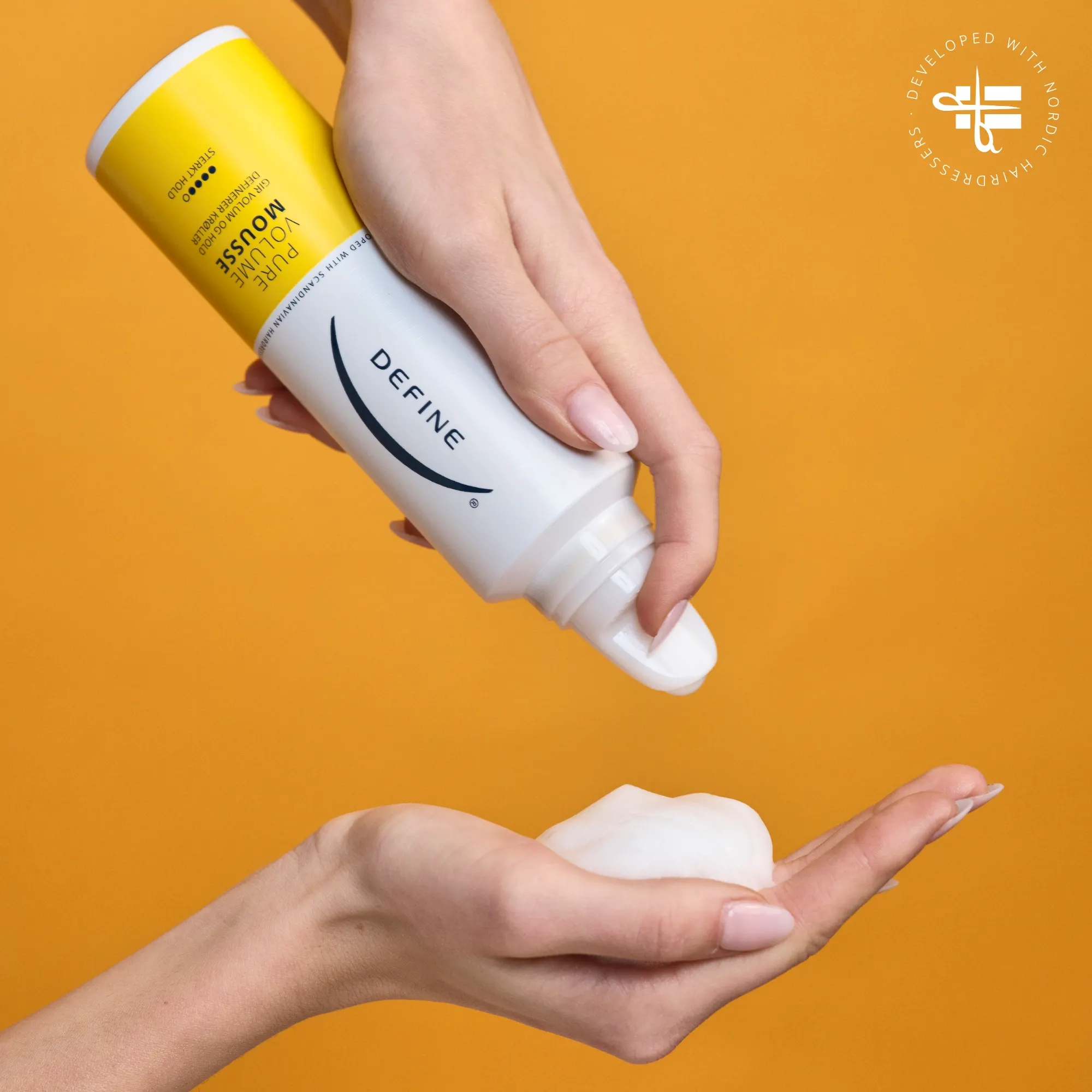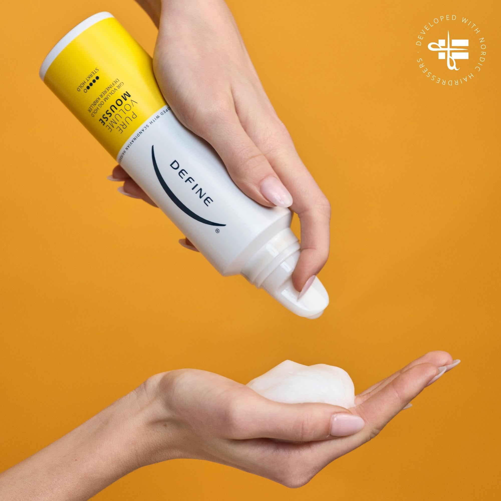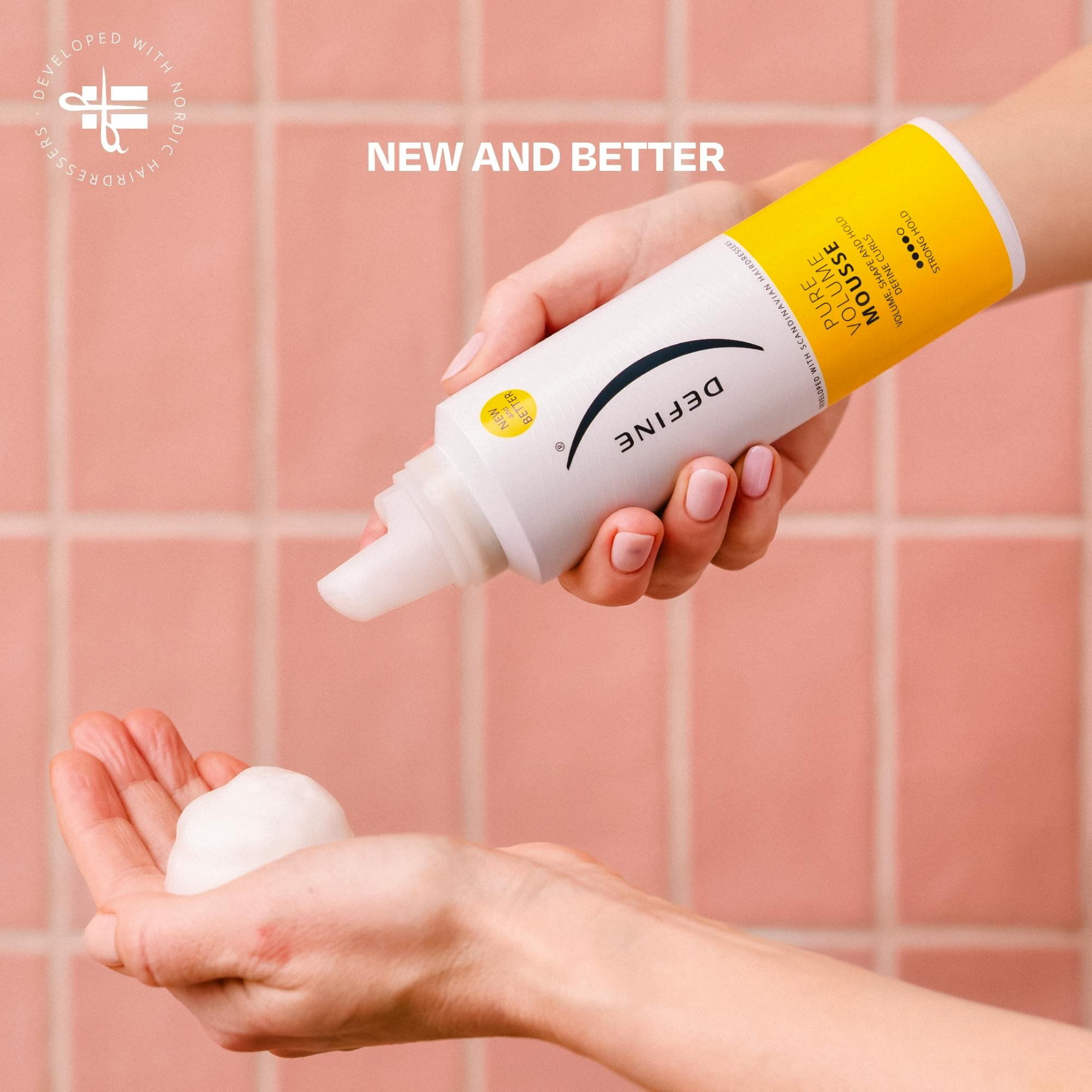 Define Pure Volume Mousse er en fyldig mousse som gir volum og hold til håret.