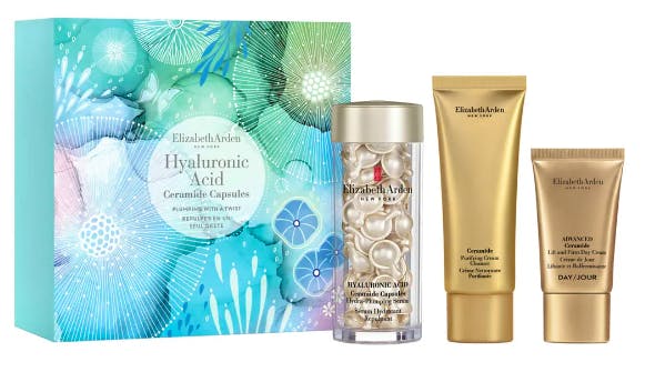 Hyaluronic Acid Ceramide Capsules Plumping With A Twist Set fra Elizabeth Arden er den perfekte gaveeske for deg som ønsker å pleie og fukte huden din på en luksuriøs måte.