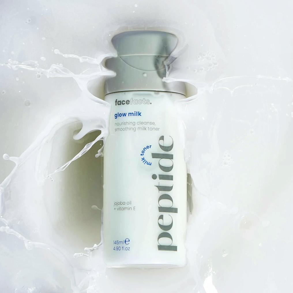 Peptide - Glow Milk er en forfriskende ansiktstoner fra det anerkjente merket Face Facts, designet for å gi hudpleierutinen din et snev av luksus.