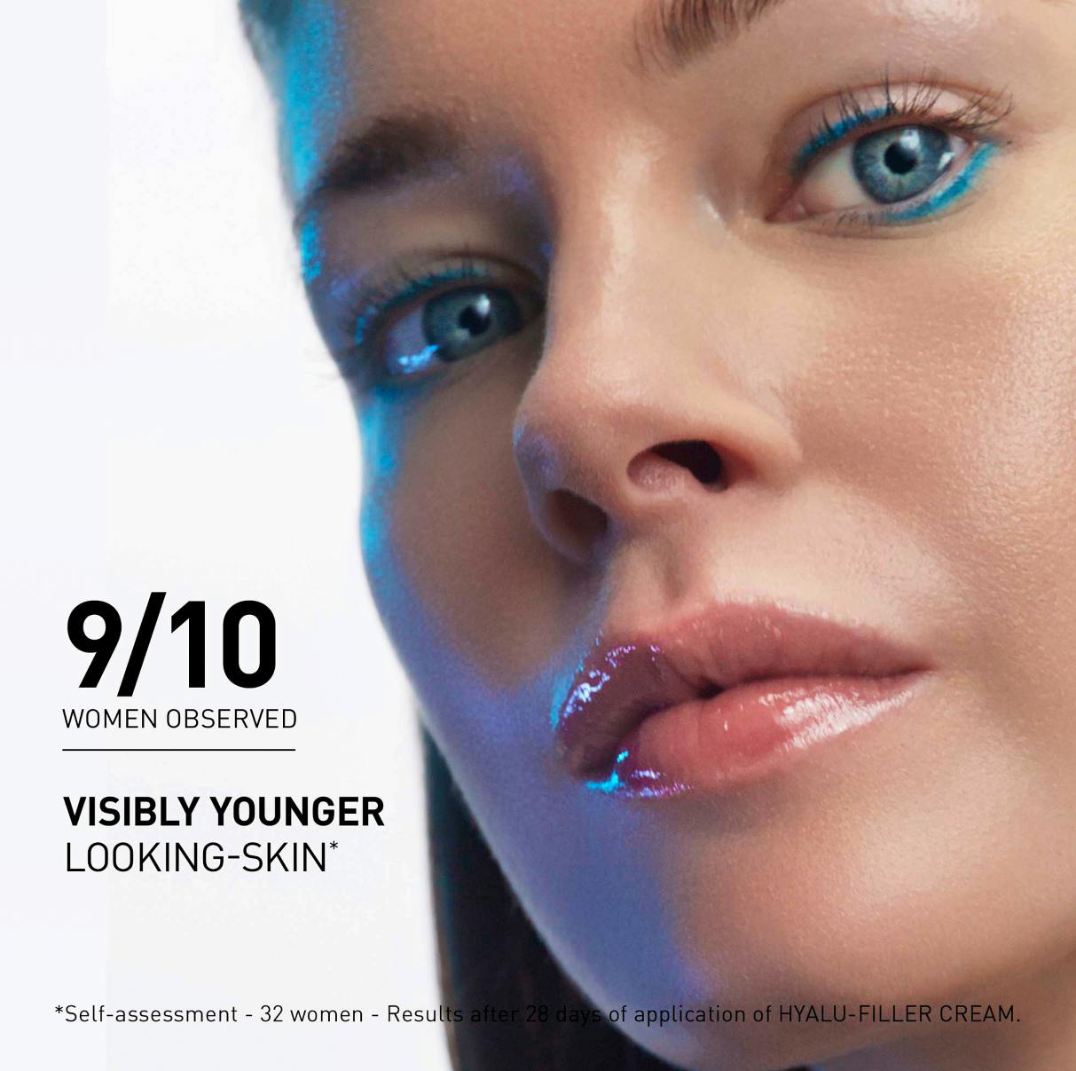Klinisk dokumenterte resultater: 9 av 10 kvinner opplevde synlig yngre hud etter 28 dager.* Hudens fuktighetsnivå økte med 86 % bare 30 minutter etter påføring**, og etter 28 dager var huden 29 % fyldigere***.