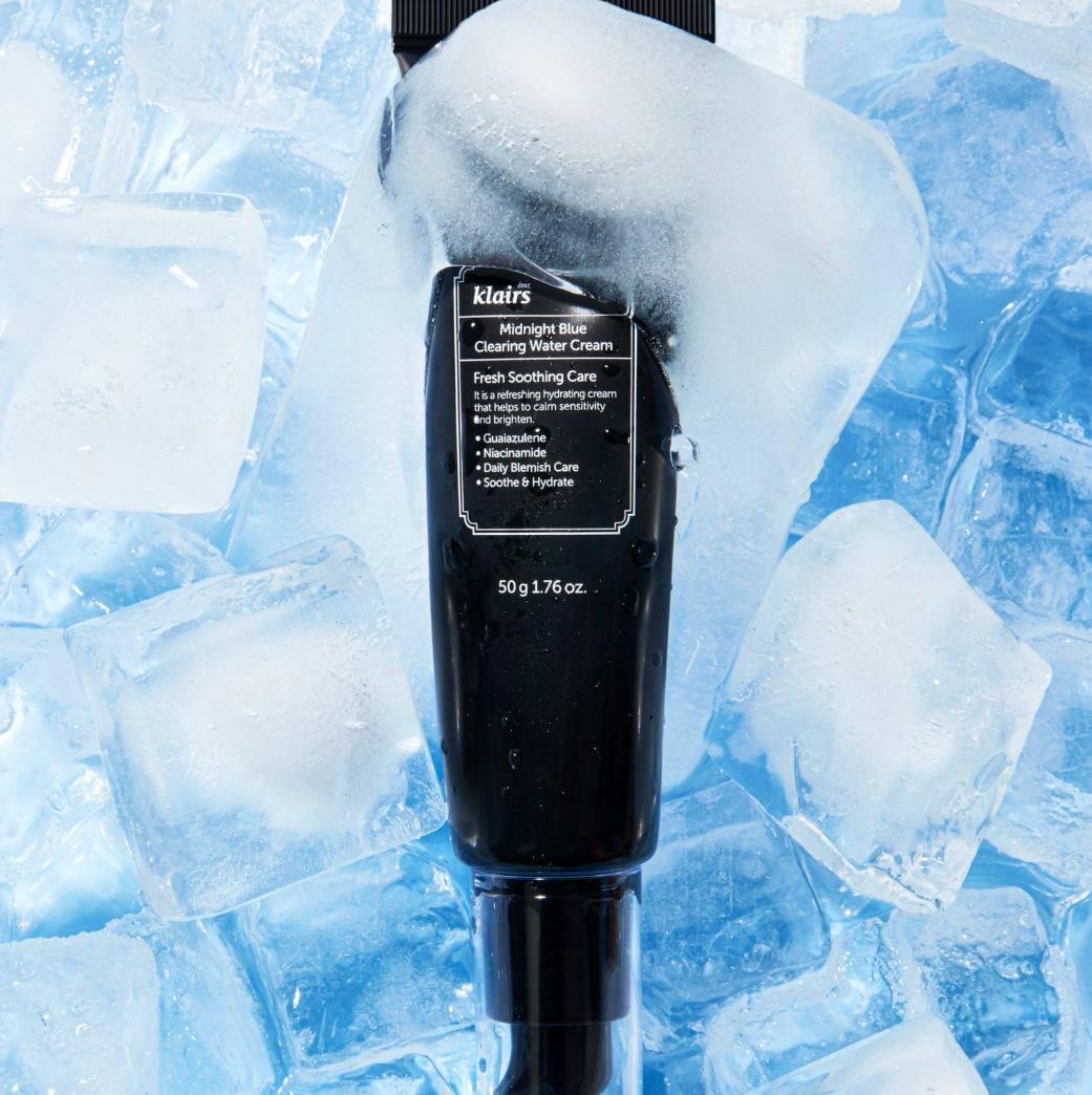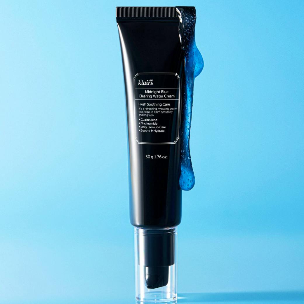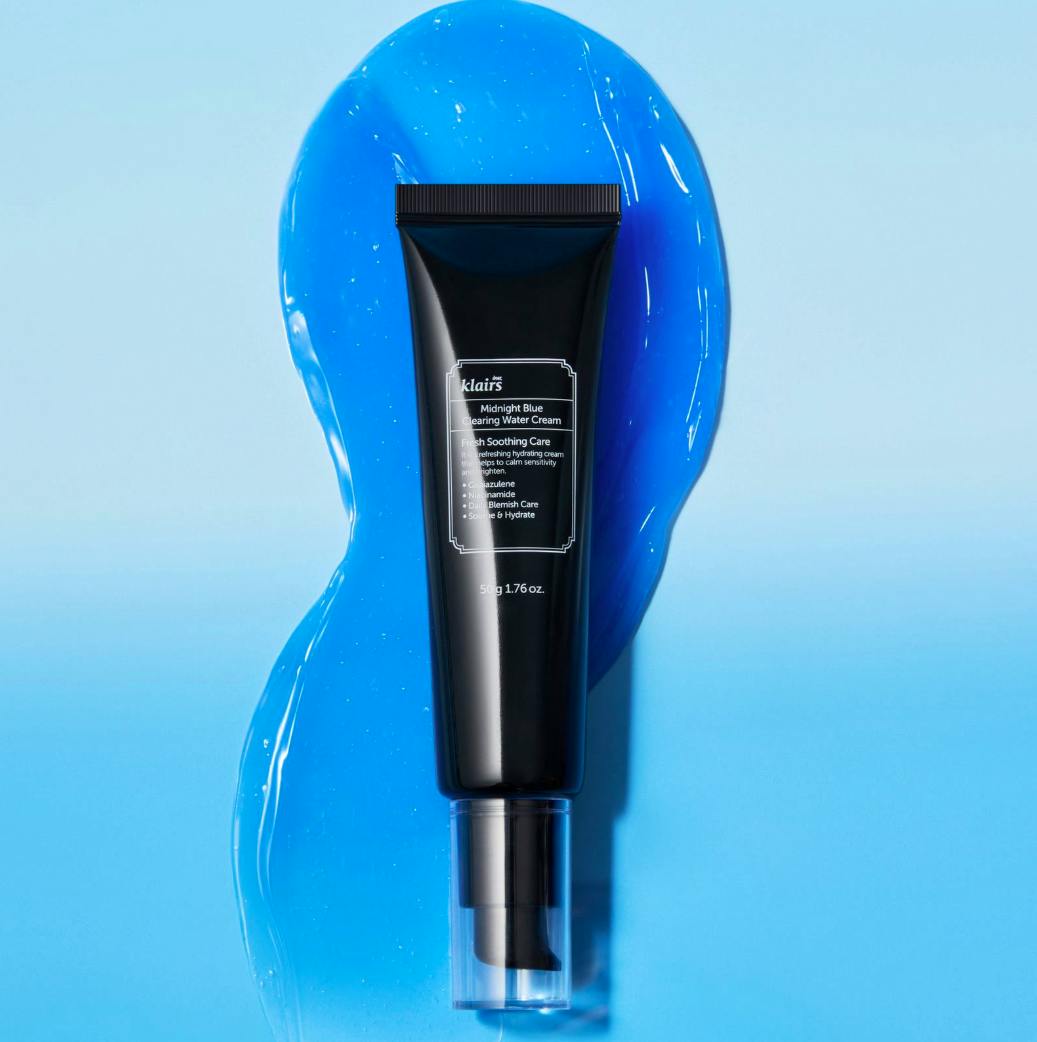 Midnight Blue Clearing Water Cream er en lett og kjølende ansiktskrem som roer ned, fukter og styrker hudbarrieren.