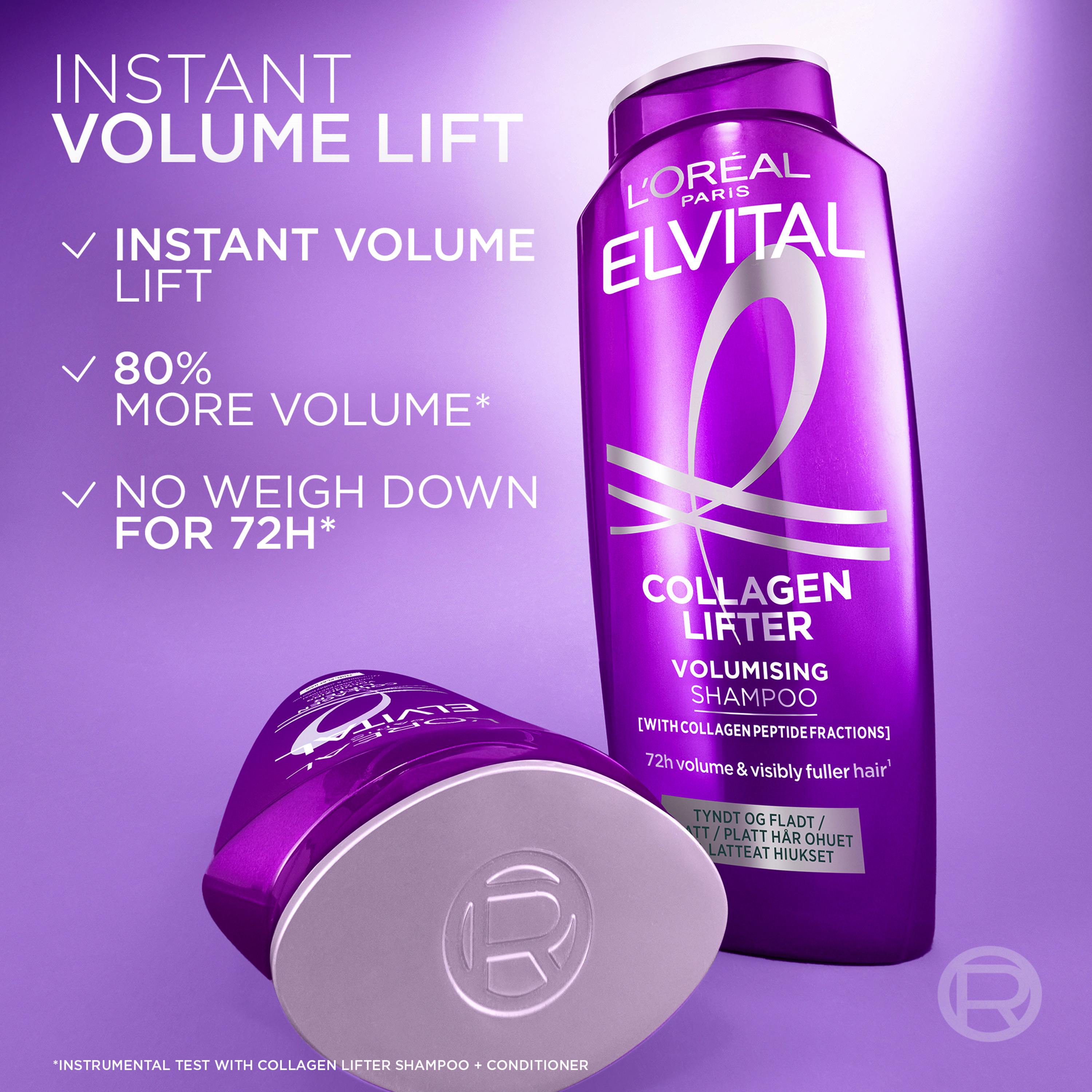 L'Oréal Paris Elvital Collagen Lifter Shampoo er en volumgivende sjampo som passer for deg som har flatt og tynt hår.