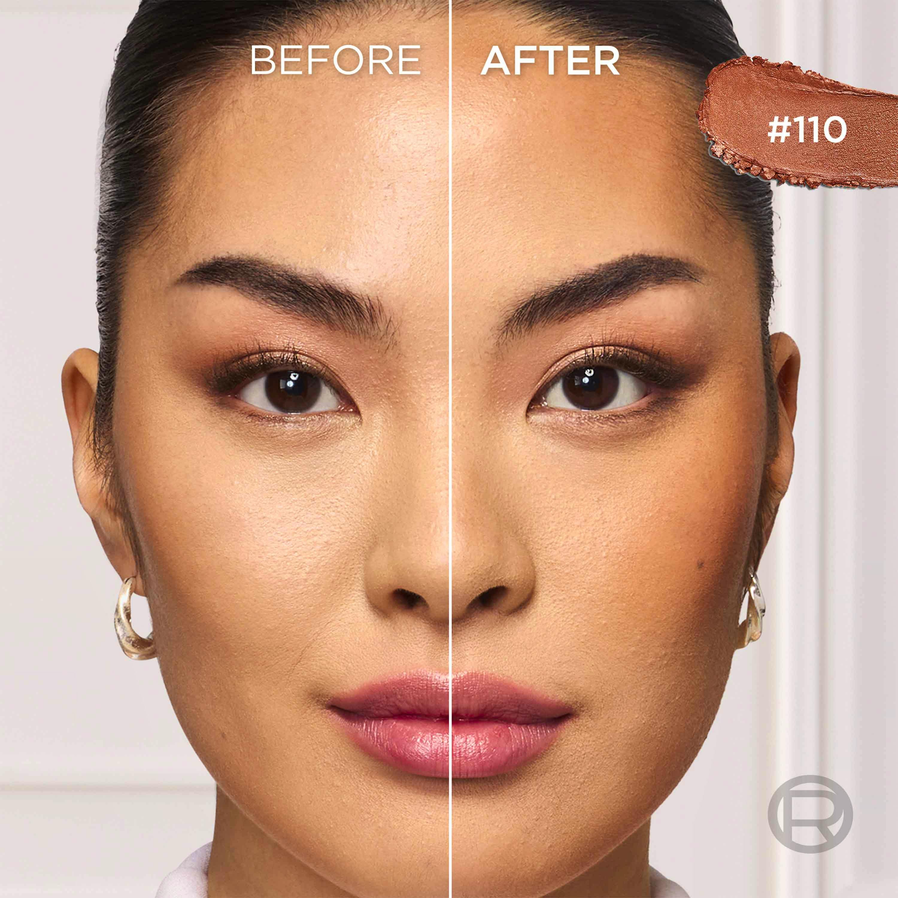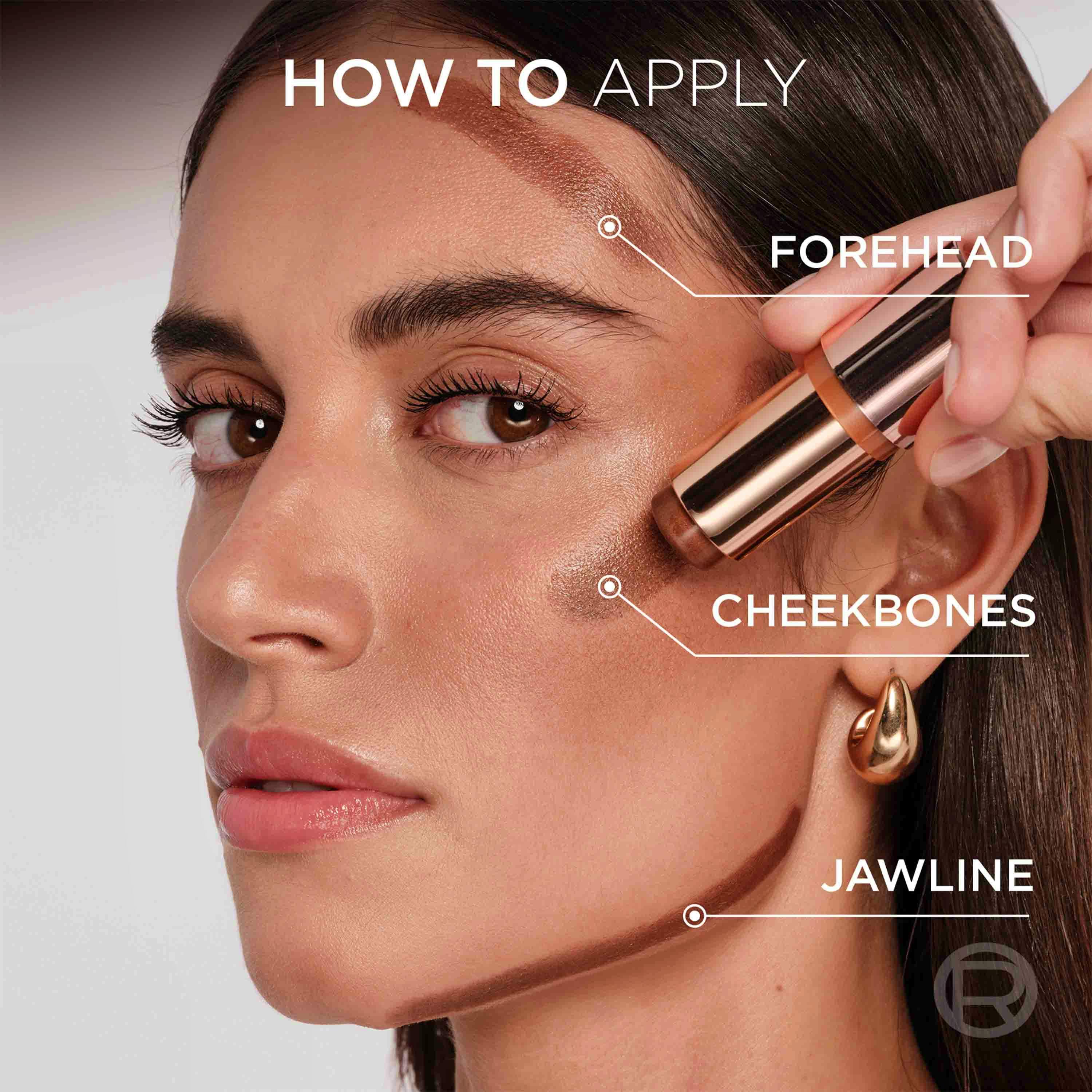 Påfør på panne, kinnben og kjevelinjen for å tilføre varme og dybde. Ton ut med fingertuppene, en makeupbørste eller -svamp for en jevn, naturlig glød.