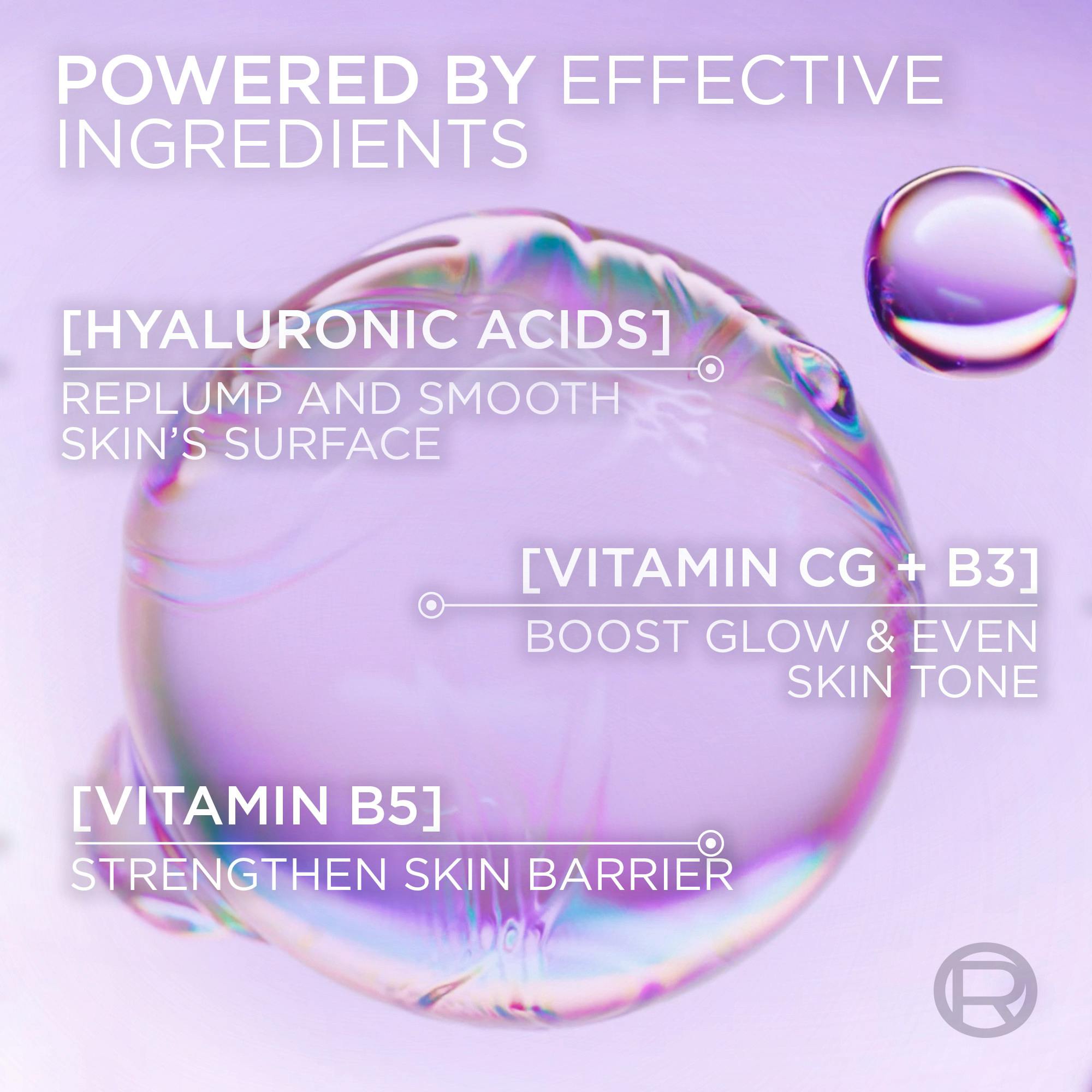L'Oréal Paris Revitalift Filler Glass Skin Liquid Cream er en innovativ, lettflytende ansiktskrem inspirert av Glass Skin-trenden fra Korea. Den er utviklet til alle som ønsker seg en hud som er så fyldig, glatt og full av glød at den reflekterer lyset som glass. Formelen er beriket med hyaluronsyre og vitamin B3 + B5 + C* og drives med kraften fra FusioglydeTM Technology som bidrar til at produktet trekker godt inn i huden og gir langvarig, strålende fukt. Dette er produktet for deg som vil ha en mer fuktet hud umiddelbart, som er full av vakker glød, og som over tid blir mer fyldig og glatt med mindre synlige linjer.