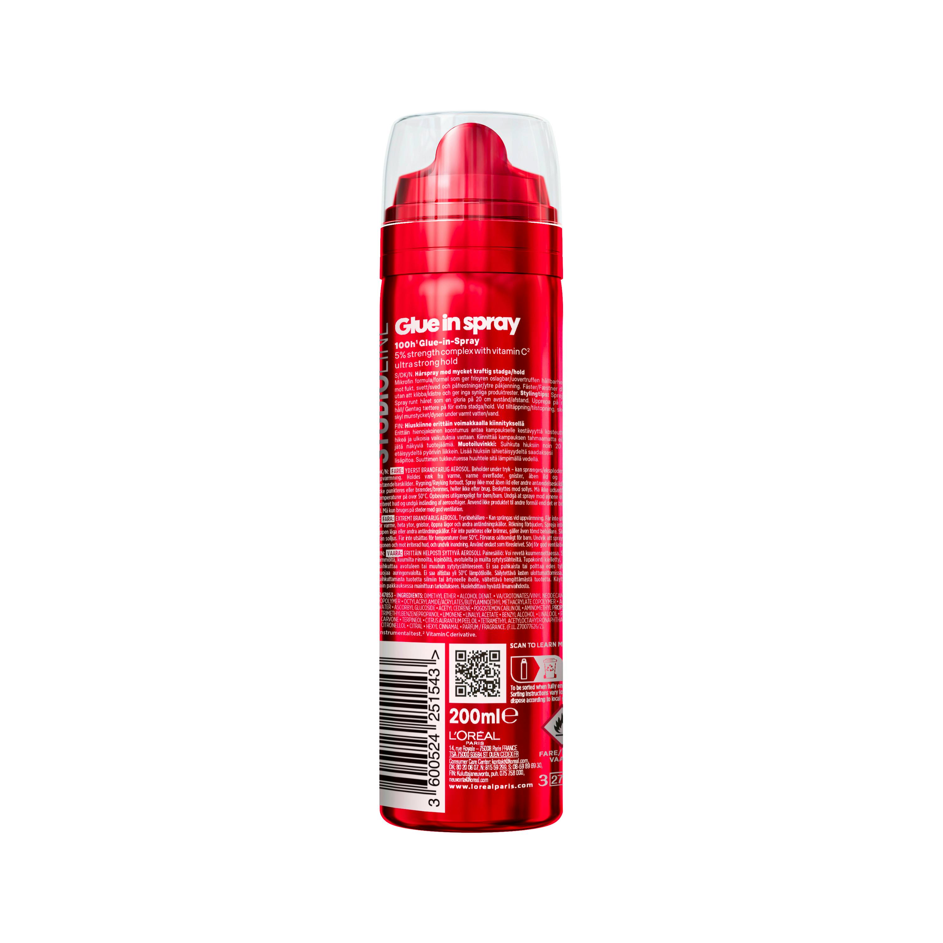 L'Oréal Paris Studio Line Glue-In Spray er en hårspray med ekstra kraftig hold som varer i 100 timer*.