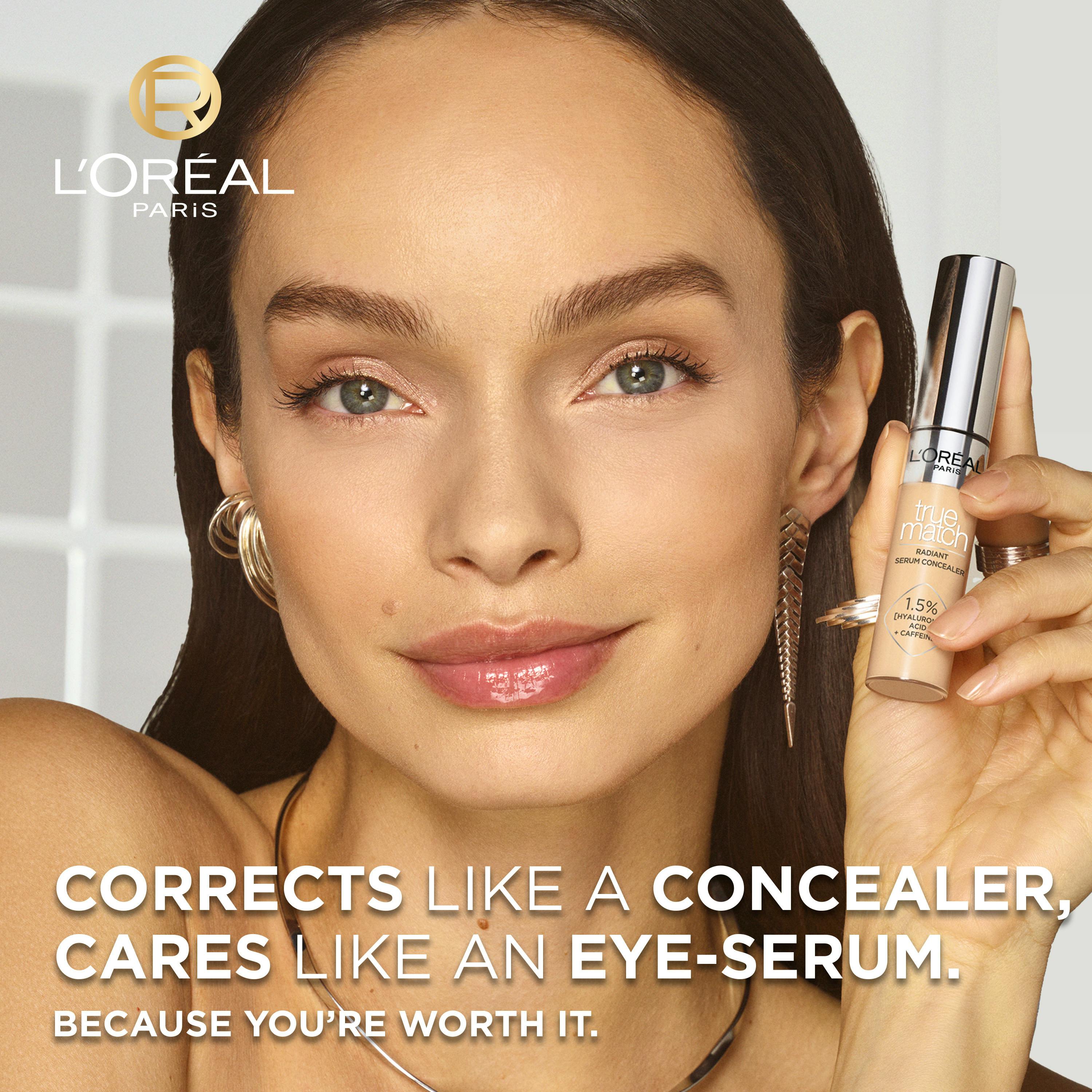 L'Oréal Paris True Match Radiant Serum Concealer har medium-høy dekkevne, nøytraliserer mørke ringer og minsker synligheten av poser under øynene.