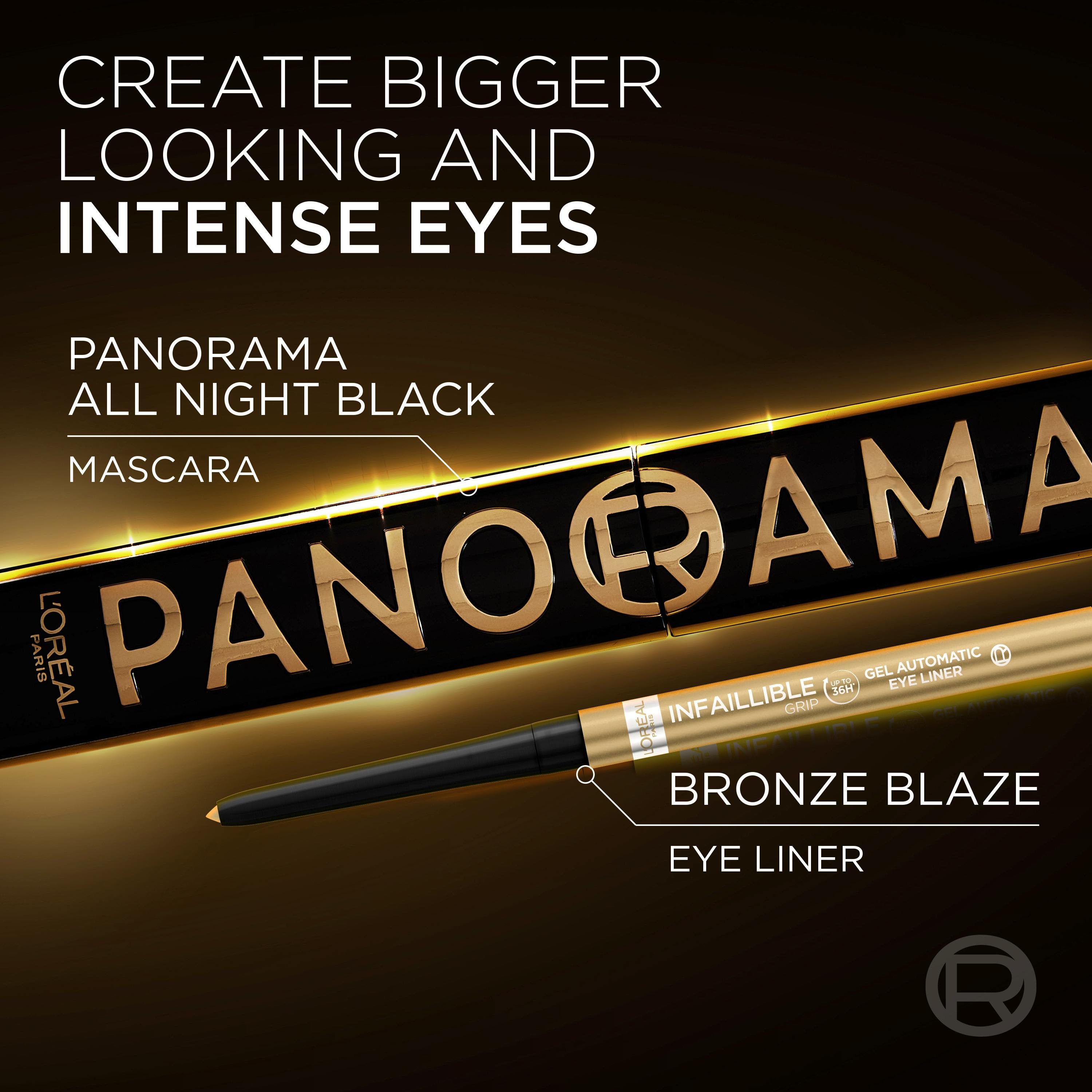 Fullfør looken med L'Oréal Paris Paradise Infaillible Grip 36H Gel Automatic eyeliner, Påfør eyelineren både på øvre og nedre vippelinje, fra innerste til ytterste øyekrok, for å definere og ramme inn øynene,