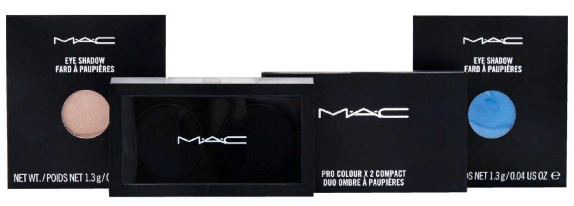 MAC Pro Color Palette Compact & Eyeshadow Refill Pan er et unikt sett som inneholder 2 stk 1,5 g øyenskygger og 1 stk palett med plass til 2 MAC øyenskygger.