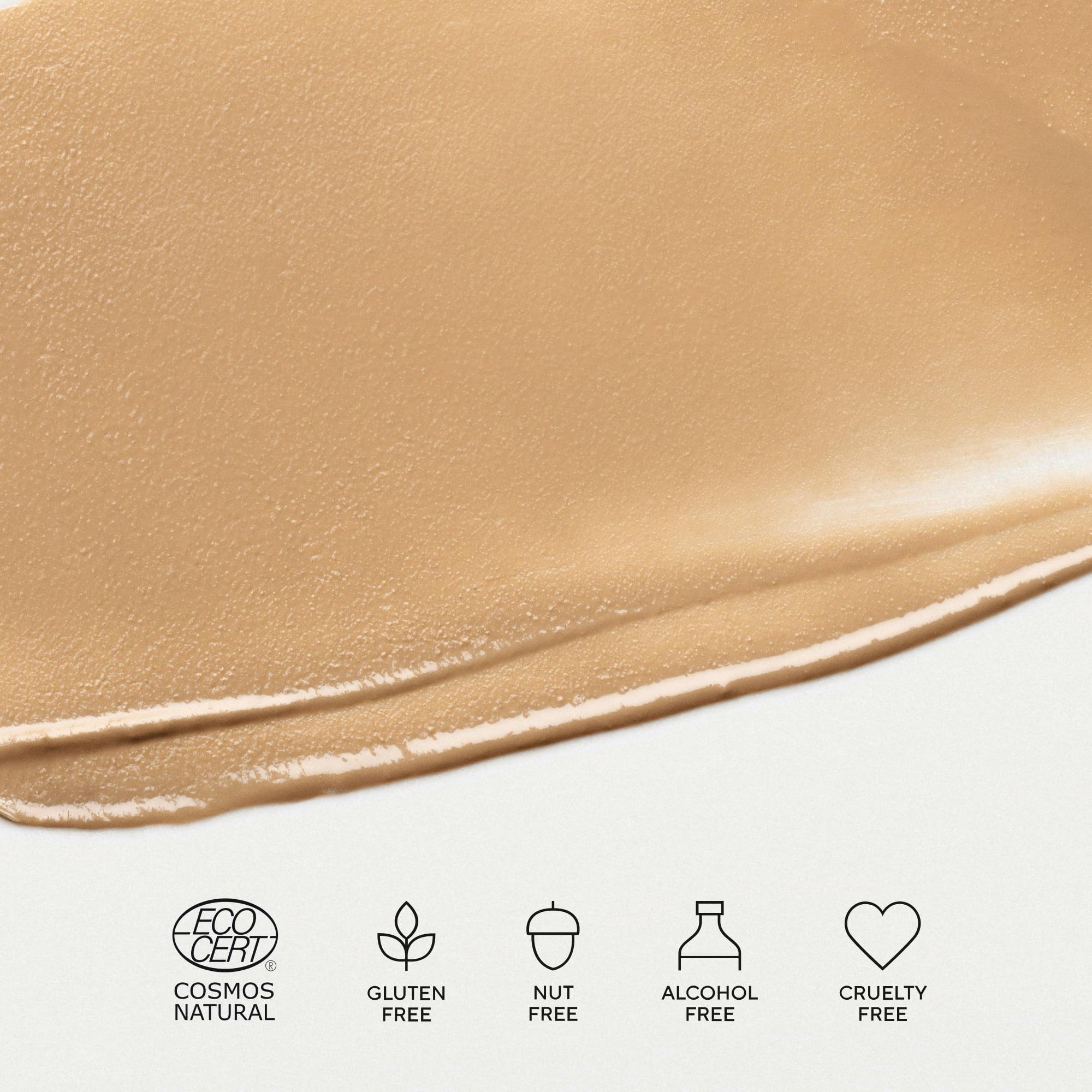 Den kremaktige teksturen glir lett på huden og glatter ut utseendet av rødhet, tekstur og flekker for en naturlig, hudlignende finish. Nærende frøoljer gir varig fukt og komfort, mens ceramider hjelper til med å støtte hudbarrieren. Mineralbaserte UVA-/UVB-filtre med bredt spektrum beskytter mot solskade, tørrhet og tidlige rynker.