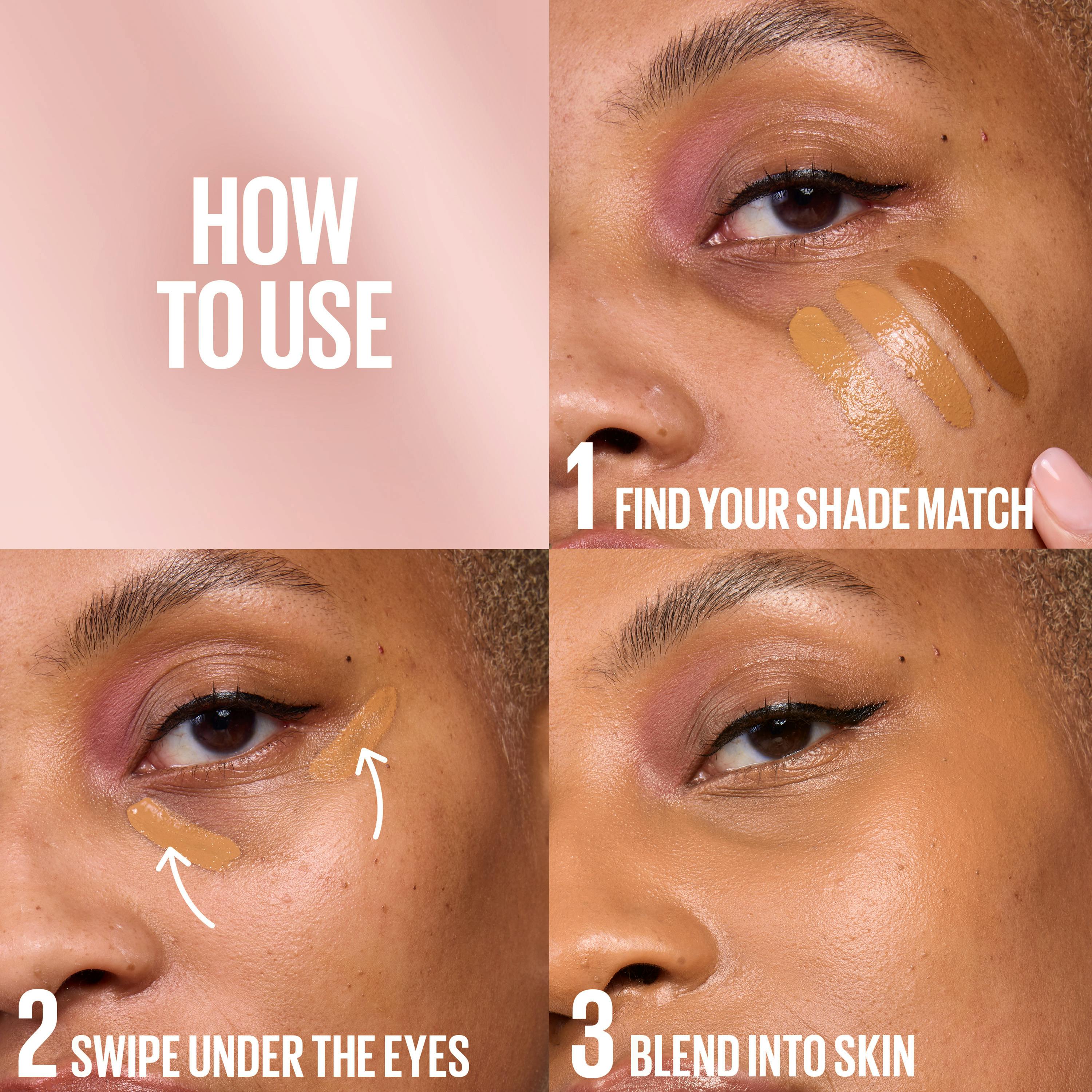 2. Vri for å åpne produktet og bruk den vinklede XL-applikatortuppen for å påføre concealeren direkte på ønskede områder, for eksempel under øynene eller på urenheter. Juster vinkelen for å oppnå presis påføring på ulike områder.