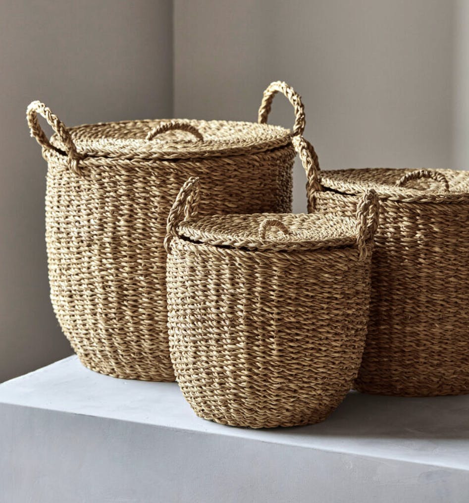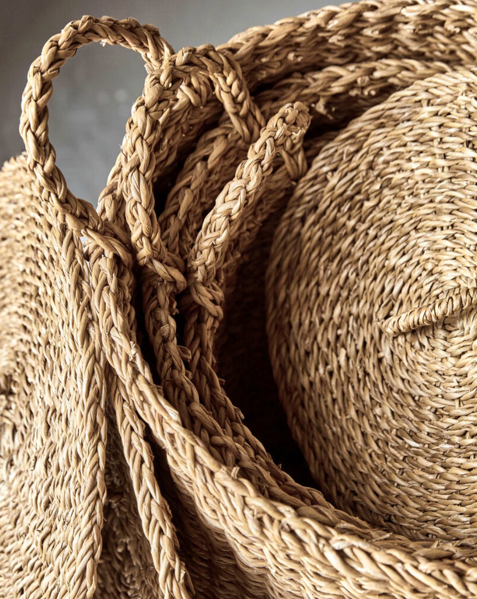 Med disse runde kurvene i sjøgress organiserer du hjemmet med naturlig eleganse.