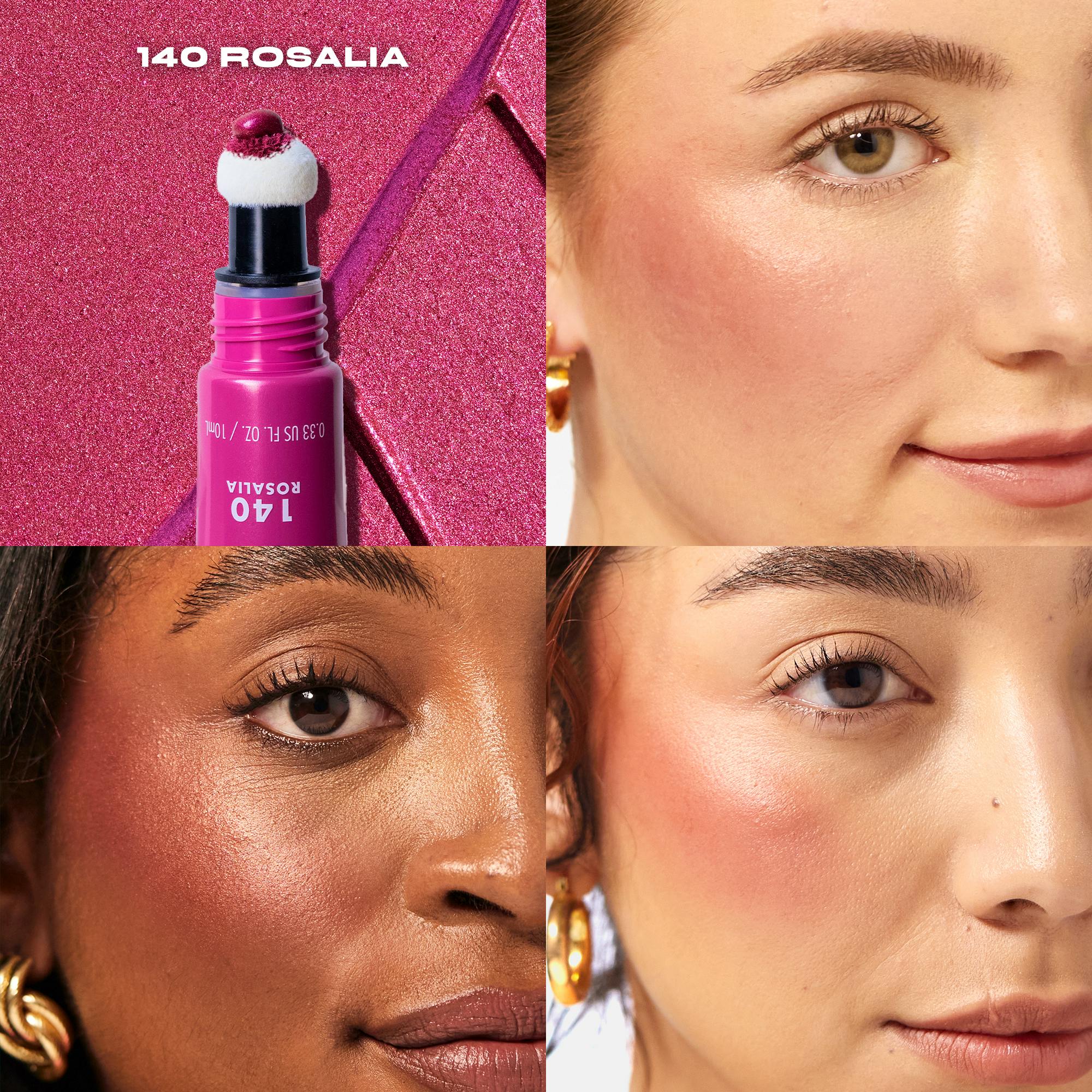 Milani's Cheek Kiss Blush+Glow Rosalia 140 er en allsidig blush som enkelt fremhever din naturlige skjønnhet med en strålende glød.