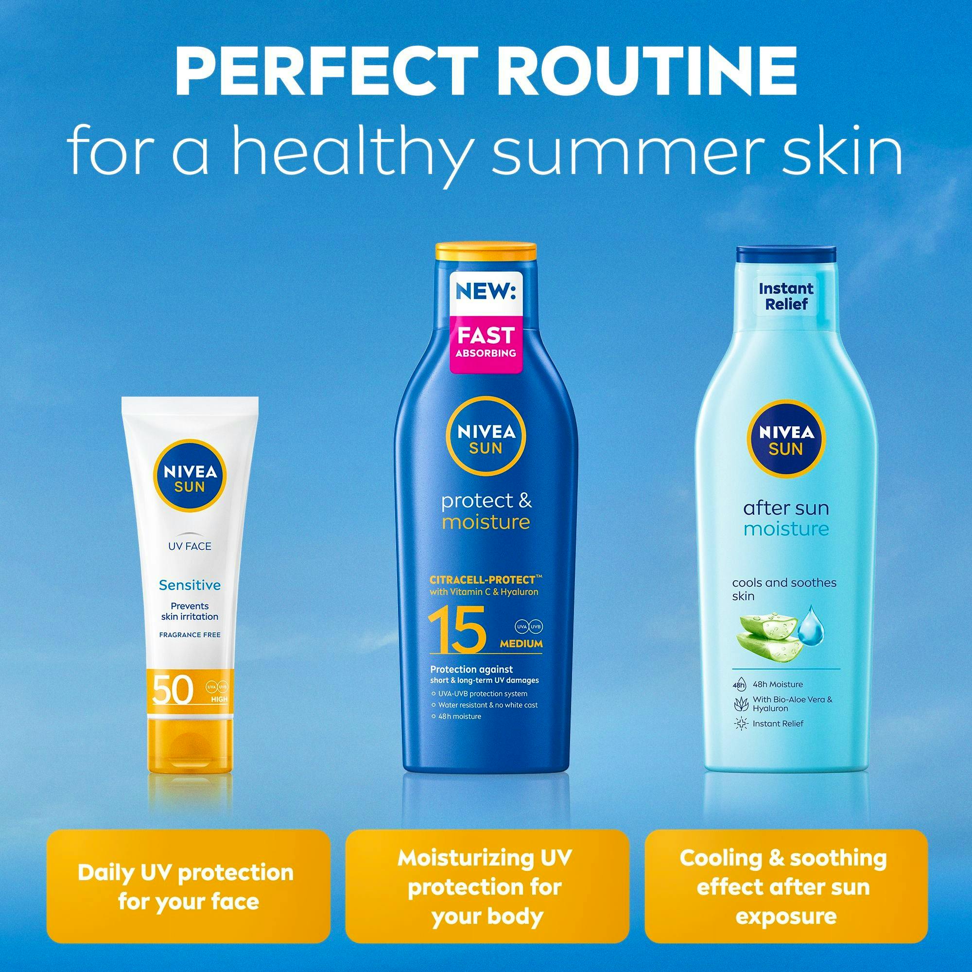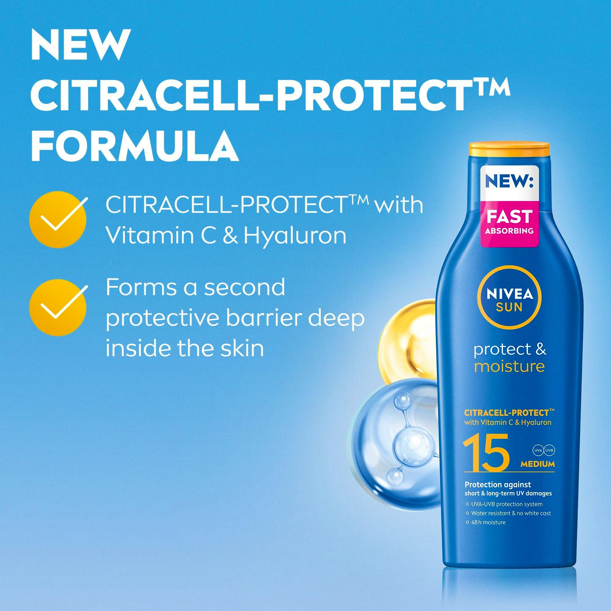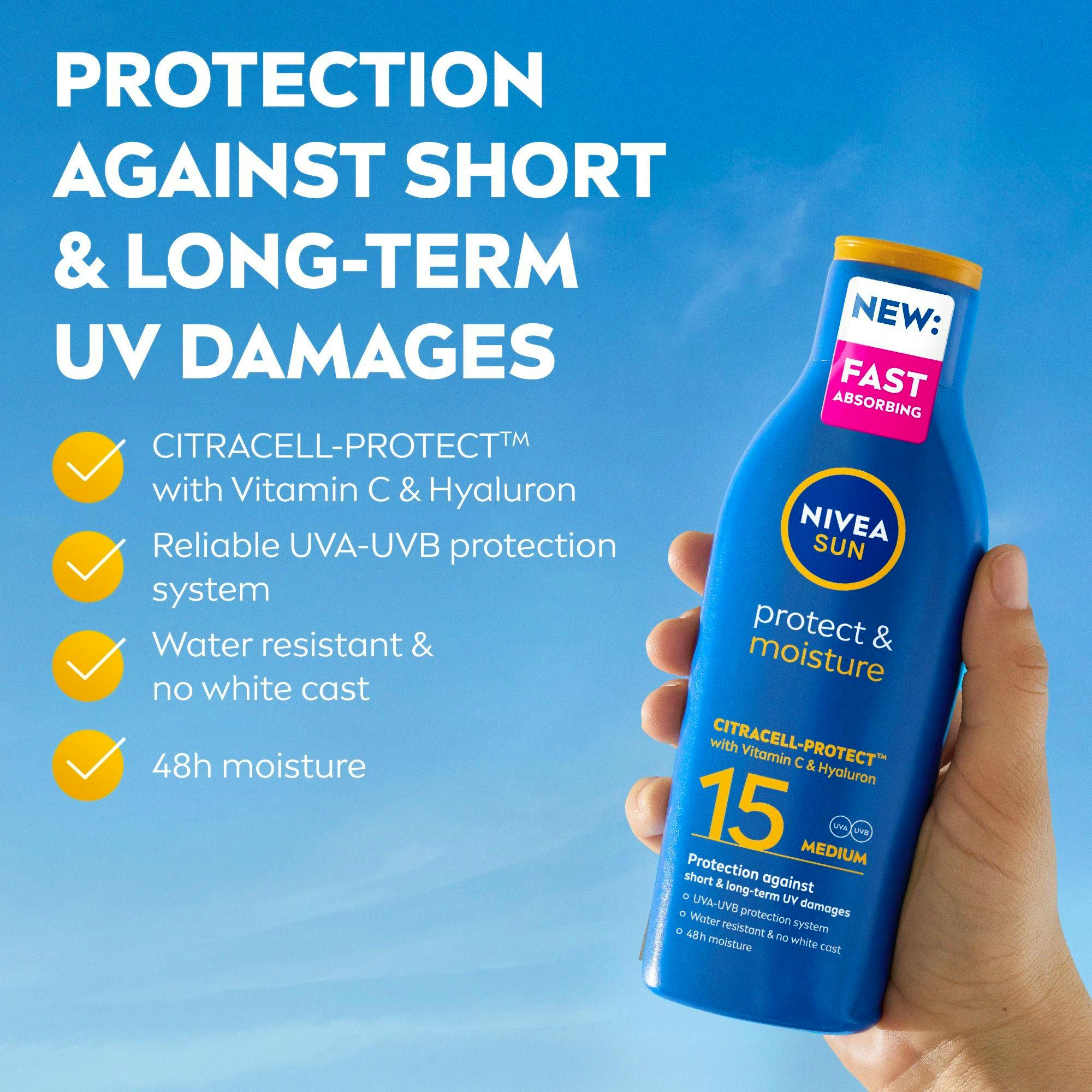Sun Protect & Moisture Sun Lotion SPF15 fra Nivea er den perfekte løsningen for å beskytte huden din mot solens skadelige stråler.