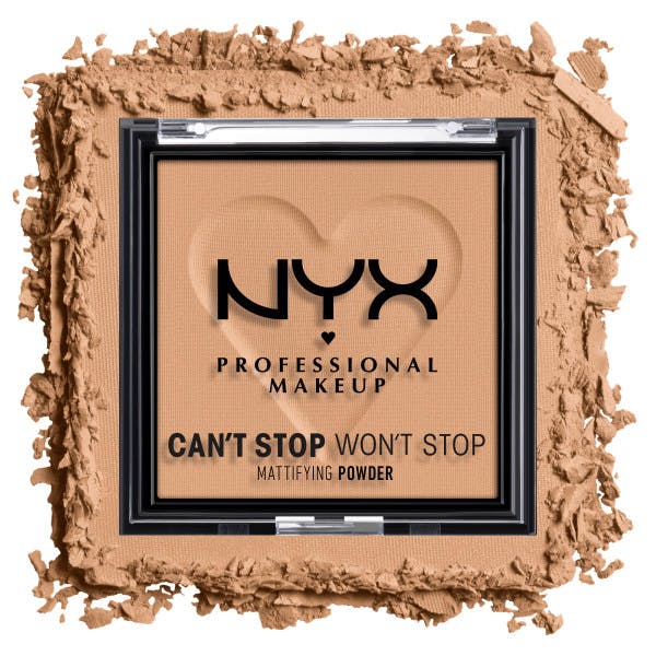 Can't Stop Won't Stop Mattifying Powder fra NYX Professional Makeup gir resultater umiddelbart og minimerer glans og fet hud. Den lette veganske formelen* gir huden en glatt og matt finish hele dagen uten å virke tørr, eller kake seg eller se askeaktig ut. Nyansene er diskrete men kan bygges opp og smelter inn i huden og gir en jevn, glatt finish uten å sette seg i de fine linjene. Det mattende pudderet forlenger det matte resultatet og får foundationen til å holde lenger uten å smitte av eller falme og sørger for at makeupen sitter som den skal. Det minimerer glans og gir en ultramatt finish som du ikke trenger å friske opp i løpet av dagen.