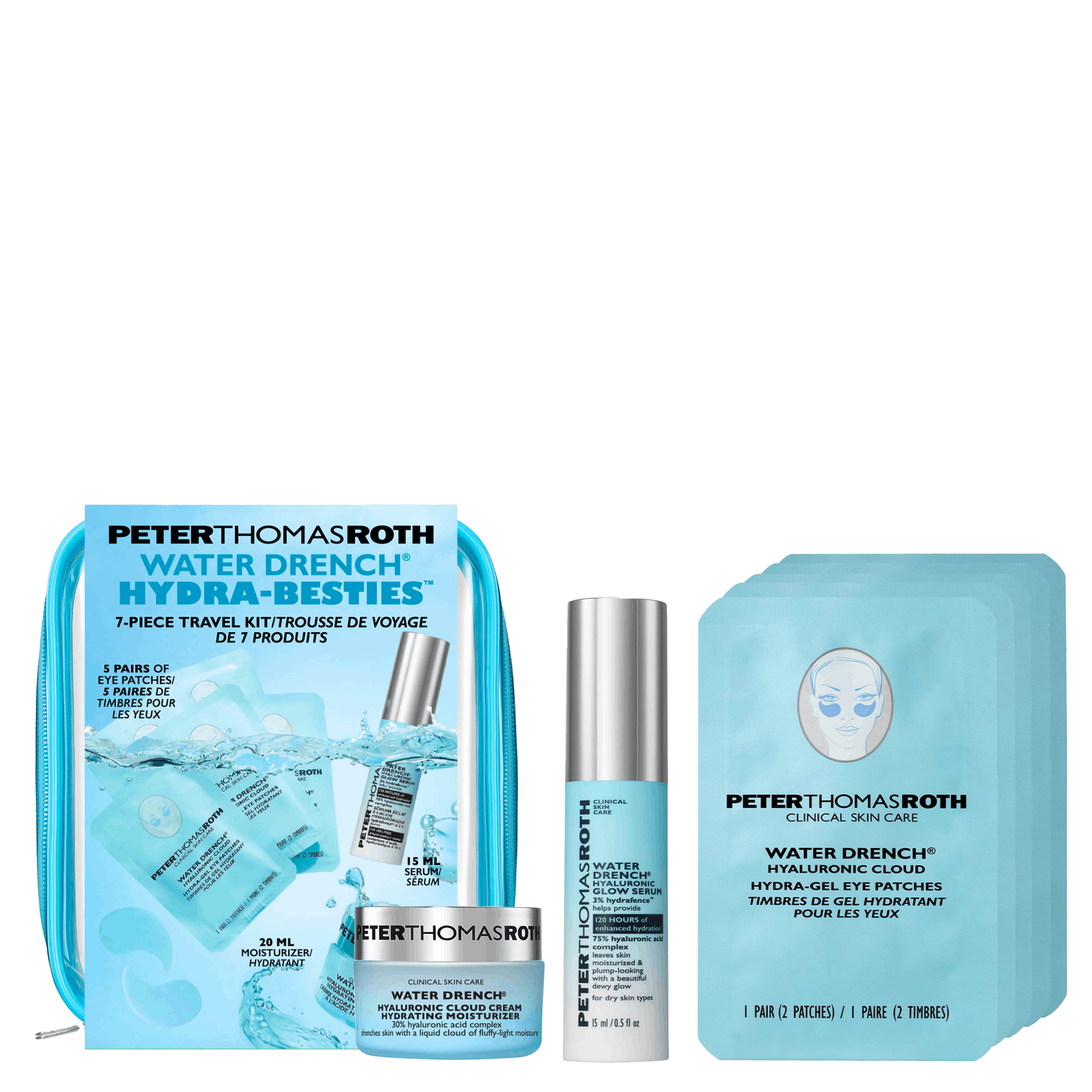 Water Drench® Hyaluronic Glow Serum:Water/Aqua/Eau, Ricinus Communis (Castor) Seed Oil, Butylene Glycol, Isostearyl Neopentanoate, Glycerin, Sodium Hyaluronate, Lactic Acid, Sphingolipids, Acrylates/C10-30 Alkyl Acrylate Crosspolymer, Amylopectin, Phospholipids, Carbomer, Potassium Sorbate, Ethylhexylglycerin, Sodium Hydroxide, Ascorbyl Palmitate, Tocopherol, Lecithin, Sodium Benzoate, Malachite Extract, Lithothamnion Calcareum Extract, Sodium Citrate, Pentylene Glycol, Isostearyl Alcohol, Xanthan Gum, Hydrogenated Palm Glycerides Citrate, Dimethicone, FD&C Blue No. 1 (CI 42090), Phenoxyethanol.Water Drench® Hyaluronic Cloud Cream Hydrating Moisturizer:Water/Aqua/Eau, Dimethicone, Glycerin, Dipropylene Glycol, Dimethicone/PEG-10/15 Crosspolymer, Sodium Hyaluronate, Yeast Extract, Ceramide AP, Ceramide EOP, Ceramide EOS, Ceramide NP, Ceramide NS, Sambucus Nigra Fruit Extract, Sodium PCA, Tocopherol, Saccharide Isomerate, Caprooyl Phytosphingosine, Caprooyl Sphingosine, Saccharomyces/Iron Ferment, Saccharomyces/Copper Ferment, Saccharomyces/Silicon Ferment, Saccharomyces/Magnesium Ferment, Saccharomyces/Zinc Ferment, Olea Europaea (Olive) Leaf Extract, Cholesterol, Citric Acid, Sodium Citrate, Methyl Gluceth-20, Sodium Chloride, Trisiloxane, Propylene Glycol, Ceteareth-25, Potassium Sorbate, Sodium Benzoate, Behenic Acid, Butylene Glycol, Lauryl PEG-9 Polydimethylsiloxyethyl Dimethicone, Cetyl Alcohol, Ethylhexylglycerin, Mica, Phenoxyethanol.Water Drench® Hyaluronic Cloud Hydra-Gel Eye Patches:Water/Aqua/Eau, Glycerin, Butylene Glycol, Sodium Hyaluronate, Hydrolyzed Collagen, Caffeine, Ceramide Np, Arnica Montana Flower Extract, Althaea Officinalis Root Extract, Allantoin, Tocopherol, Hydrolyzed Sodium Hyaluronate, Butyrospermum Parkii (Shea) Butter, Glycyrrhiza Glabra (Licorice) Root Extract, Scutellaria Baicalensis Root Extract, Angelica Gigas Root Extract, Cimicifuga Racemosa Root Extract, Morus Alba Bark Extract, Paeonia Lactiflora Root Extract, Phellinus Linteus Extract, Polygonum Multiflorum Root Extract, Sesamum Indicum (Sesame) Seed Extract, Sophora Angustifolia Root Extract, Aloe Barbadensis Leaf Juice, Ricinus Communis (Castor) Seed Oil, Amorphophallus Konjac Root Powder, Carrageenan, Hydroxyacetophenone, Hexylene Glycol, Propanediol, Xylitylglucoside, Sucrose, Anhydroxylitol, Glyceryl Caprylate, Xylitol, Betaine, Ethylhexylglycerin, Glucose, Lecithin, Maltodextrin, Magnesium Aspartate, Zinc Gluconate, Aluminum Hydroxide, Copper Gluconate, PEG-60 Hydrogenated Castor Oil, Gellan Gum, Cyamopsis Tetragonoloba (Guar) Gum, Ceratonia Siliqua Gum, Calcium Chloride, Tin Oxide, Synthetic Fluorphlogopite, Bis(Glycidoxyphenyl)Propane/Bisaminomethylnorbornane Copolymer, Caprylhydroxamic Acid, Disodium EDTA, 1,2-Hexanediol, Ethyl Hexanediol Chlorphenesin, Phenoxyethanol, Mica, Blue 1 (CI 42090), Titanium Dioxide (CI 77891), Iron Oxides (CI 77491).