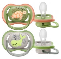 Oppdag den behagelige komforten og det lekne designet til SCF085/40 Ultra Air 6-18 M Green Sea Creatures-smokken, som er perfekt for din lille skatts daglige trøst.