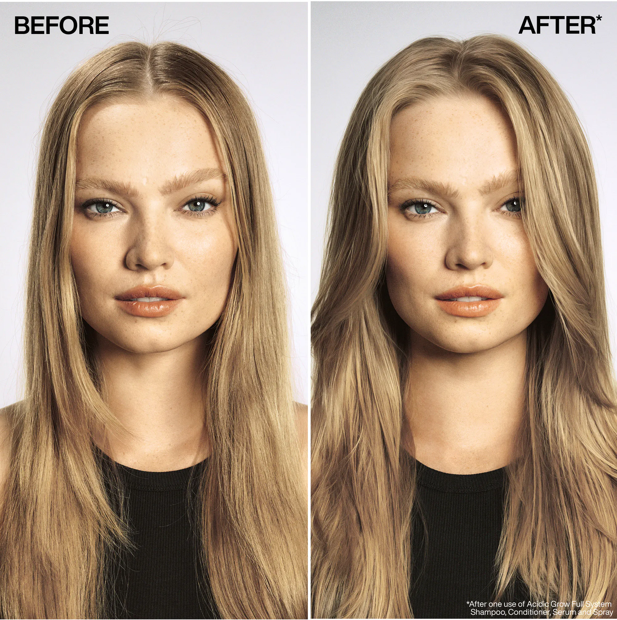 Umiddelbart etter bruk av både ACIDIC GROW FULL SHAMPOO og ACIDIC GROW FULL CONDITIONER: