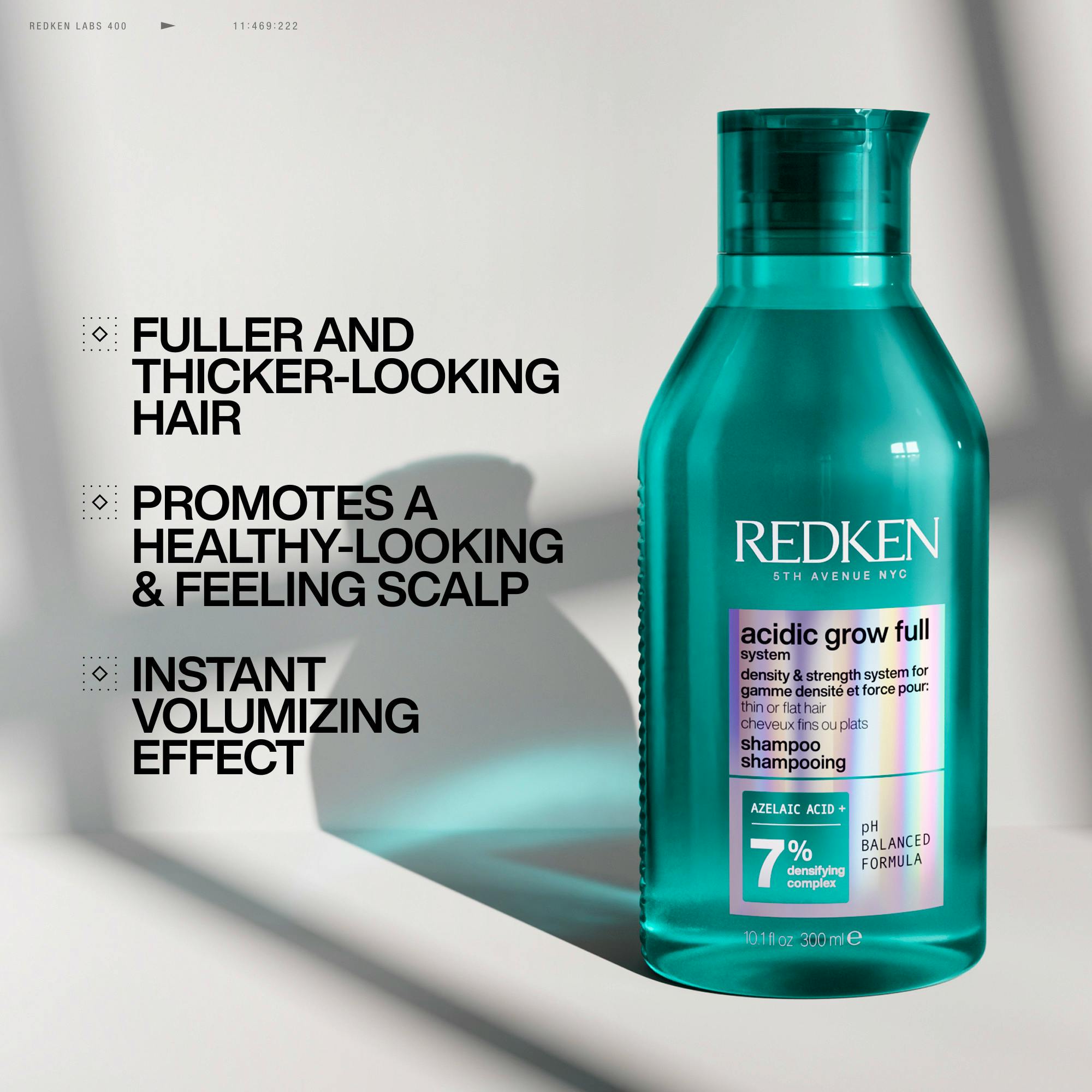 Fra merket som er ledende innen avansert pH-vitenskap, introduserer Redken nyheten Acidic Grow Full System Densifying Shampoo, beriket med azelainsyre, for et hår som ser fyldigere og tykkere ut.