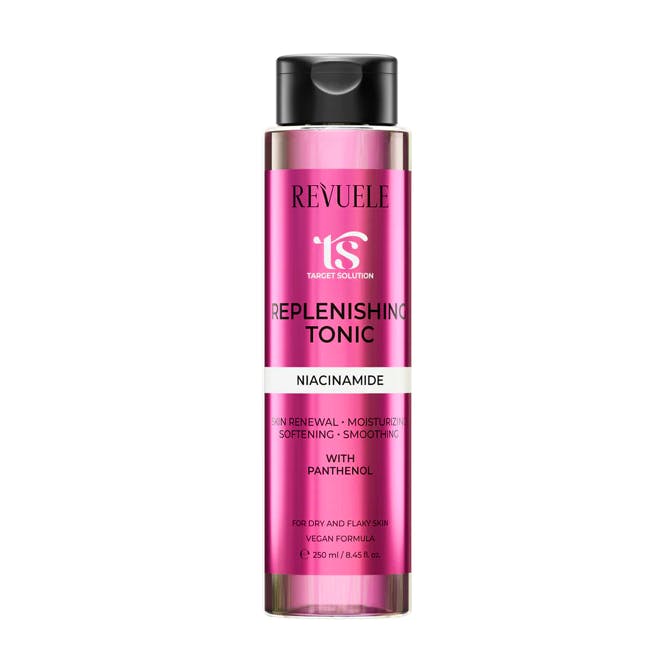 REVUELE TS REPLENISHING TONIC NIACINAMIDE.Transform skin imperfections caused by external factors with the REVUELE Target solution range.The active formula of the product supplies the skin with a powerful combination of Niacinamide and D-Panthenol.