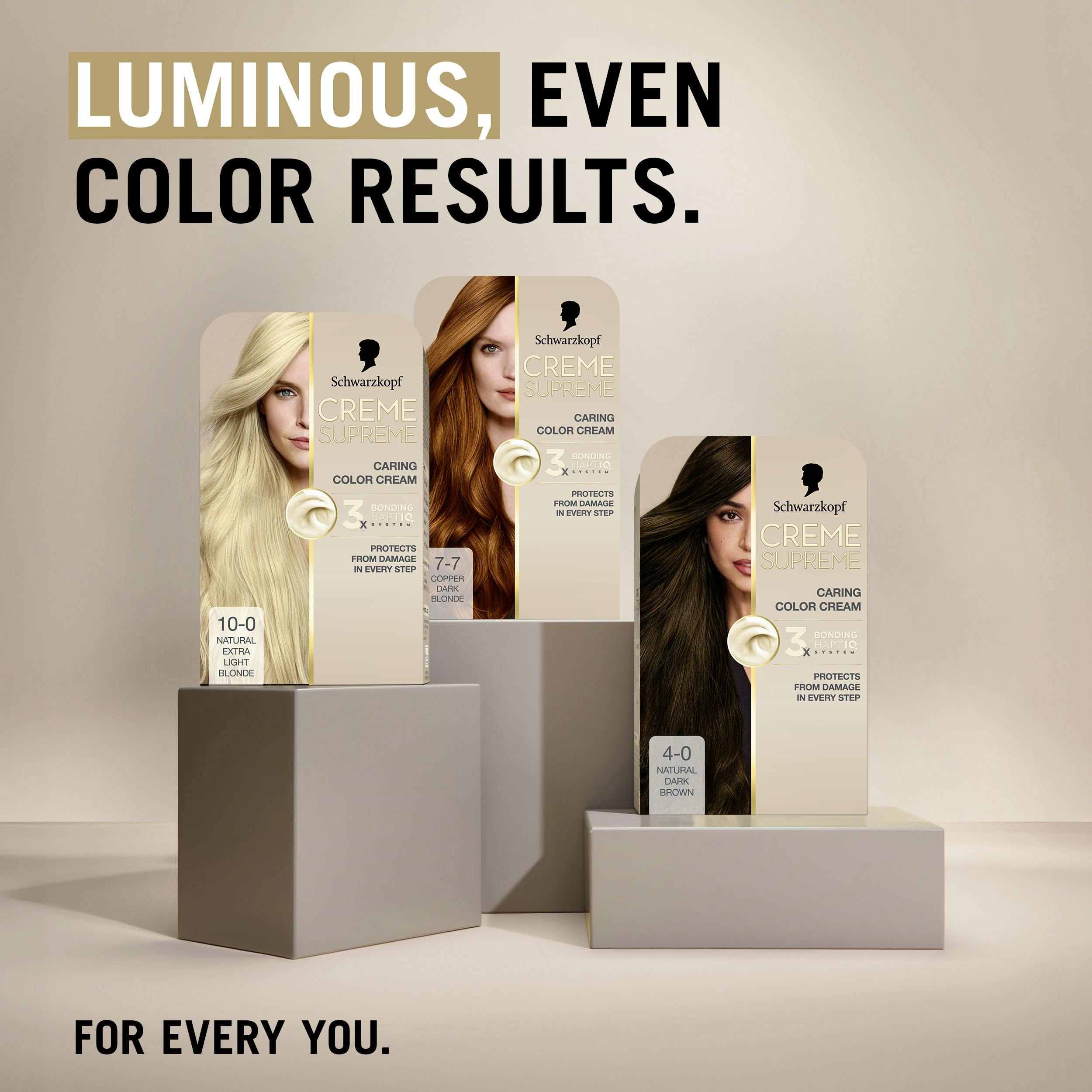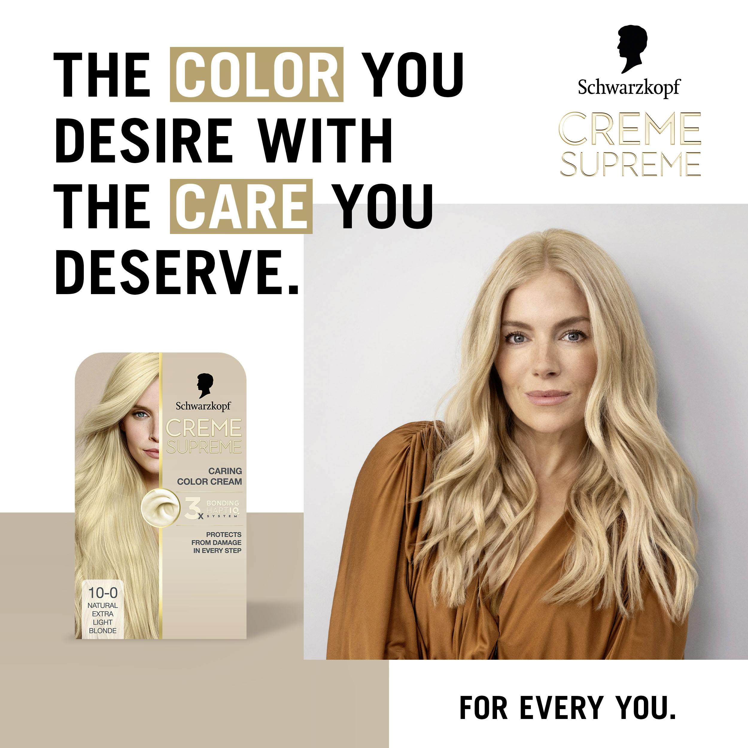 Schwarzkopf Creme Supreme 10-0 Natural Extra Light Blonde er en permanent hårfarge som gir en fantastisk, naturlig blond nyanse samtidig som den gir fremragende pleie til håret ditt.
