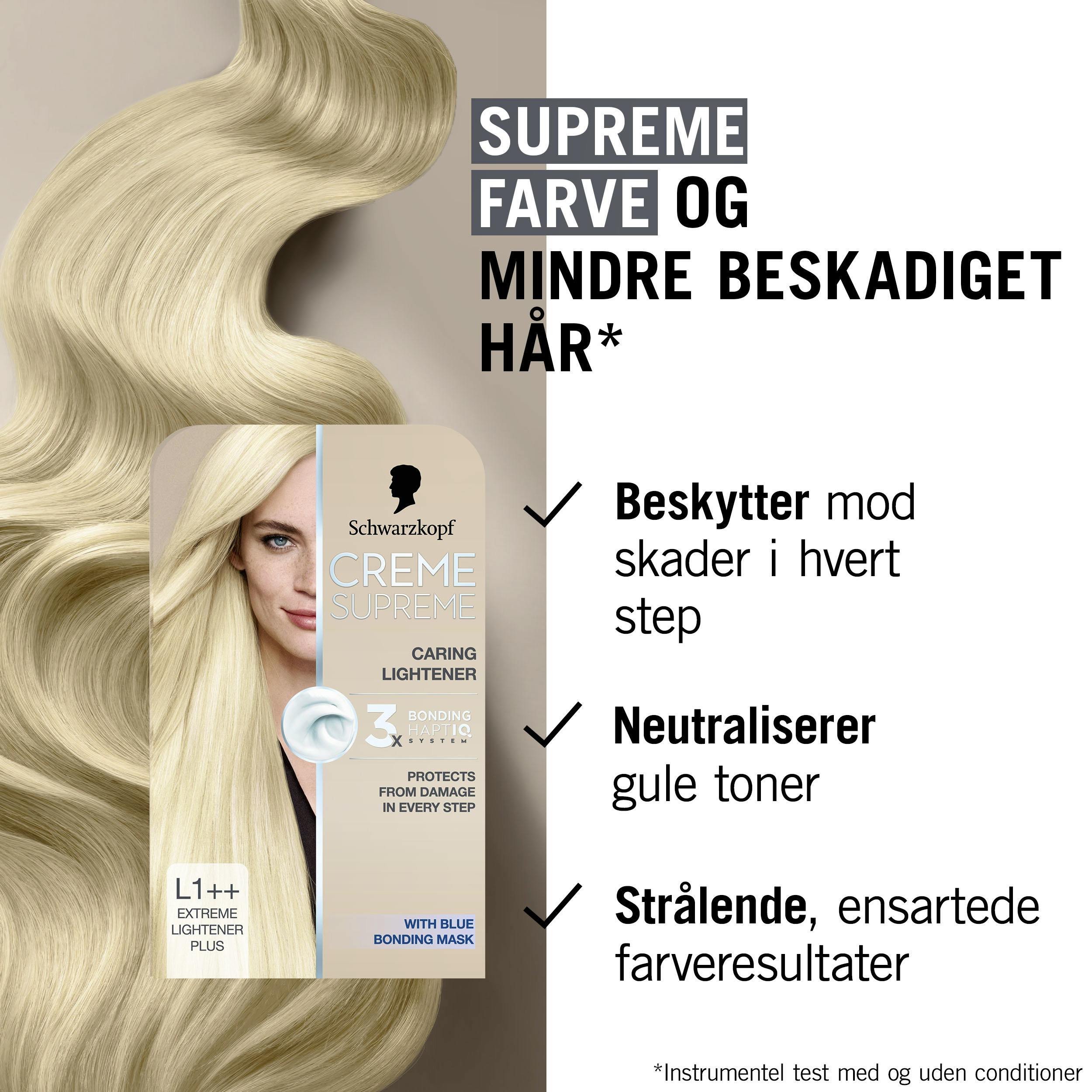 Creme Supreme L1++ Extreme Lightener Plus er en permanent hårlysner fra det anerkjente merket Schwarzkopf.