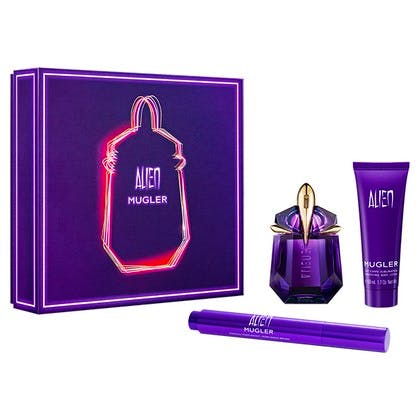 Thierry Mugler inviterer deg inn i Aliens mystiske univers med en unik, sensuell og forførende duft. Denne gaveesken inneholder en kroppslotion, liten (reisestørrelse) parfyme børste og en 30 ml. Alien Eau de Parfume i samme duft.