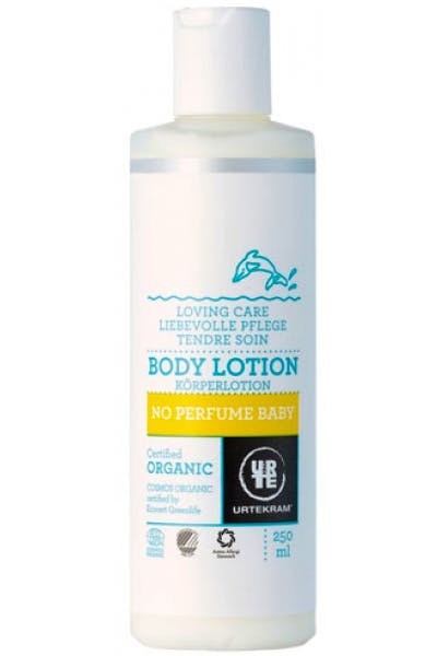 Urtekram's No Perfume Baby Bodylotion er en skånsom og pleiende lotion spesielt utviklet for babyers sensitive hud.